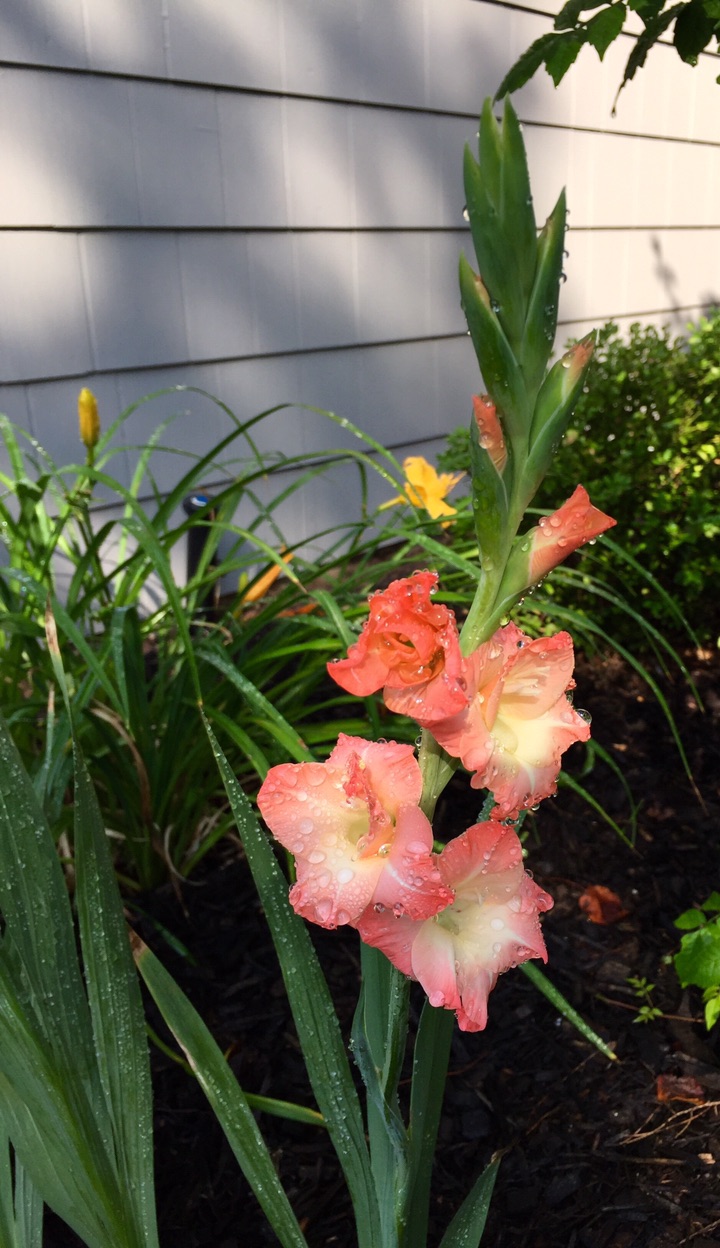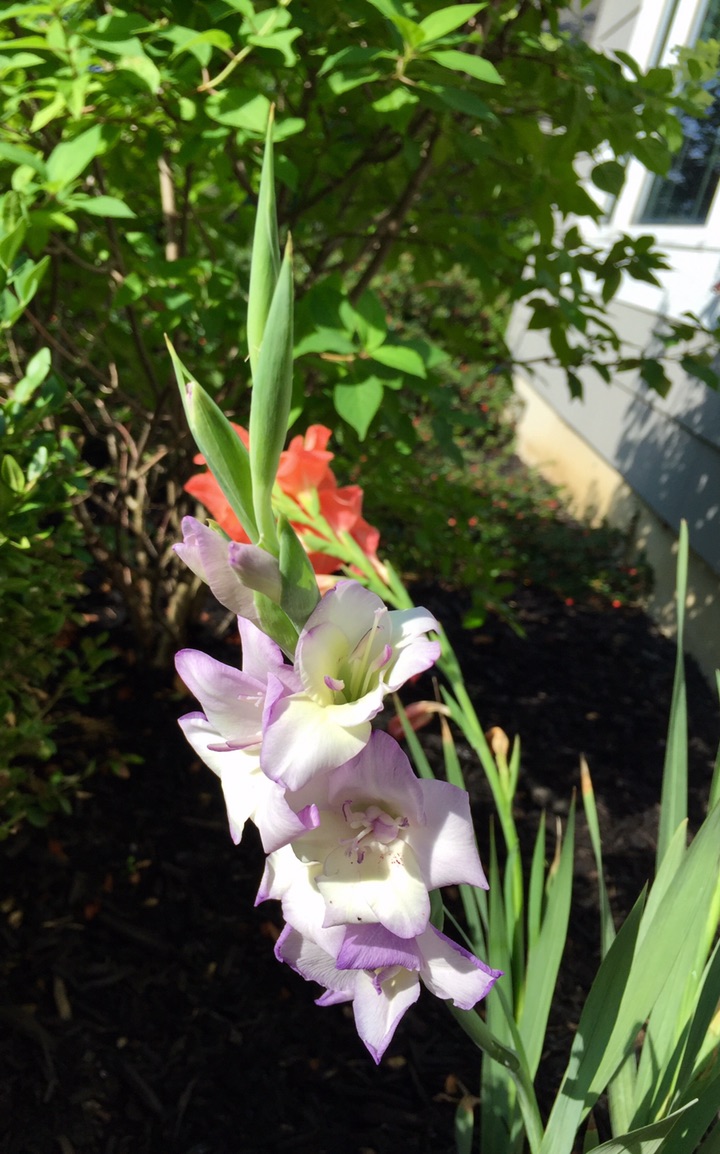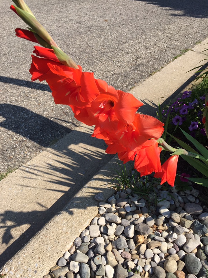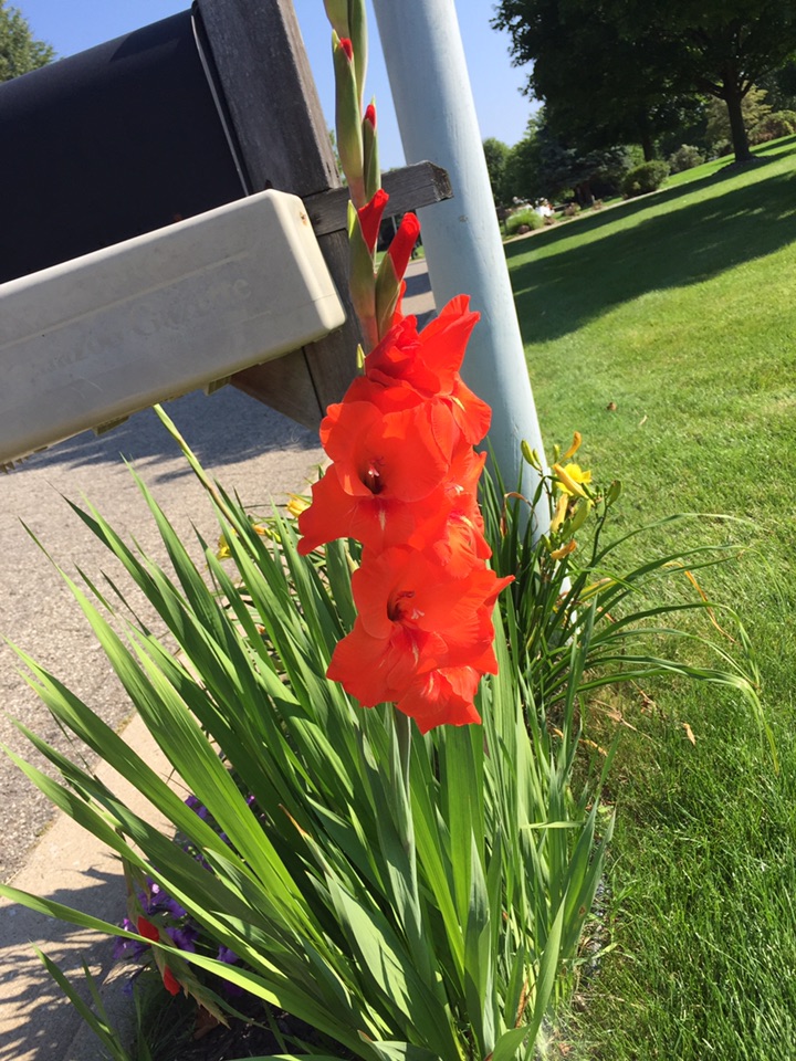 下面这束红色的是邻居家种在邮箱旁的 阳光下红艳艳的耀眼
