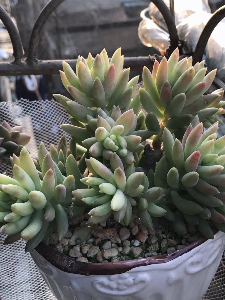 虽然2012年开始养多肉,新入门和多数人一样损失了不少,之后就没有再买新的。剩下的青丽、千佛手、雅乐之舞、紫牡丹一直陪着我,除了紫牡丹牺牲在2016年那个可怕的夏天。