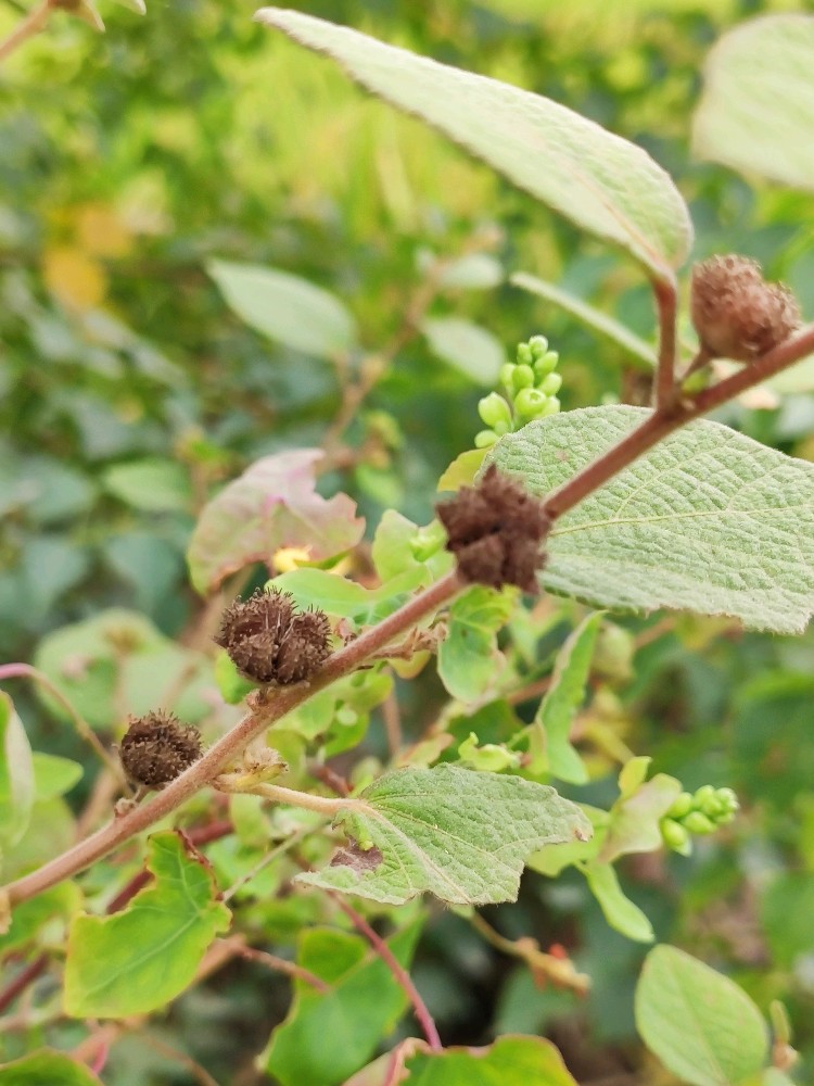 上次看到的地桃花有且只有一朵粉红色的小花,这次再去看它已是满枝的种子了,当然花儿也还是不少。