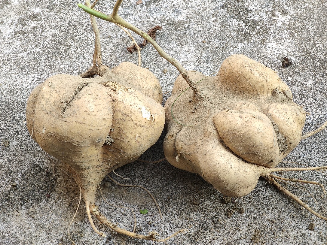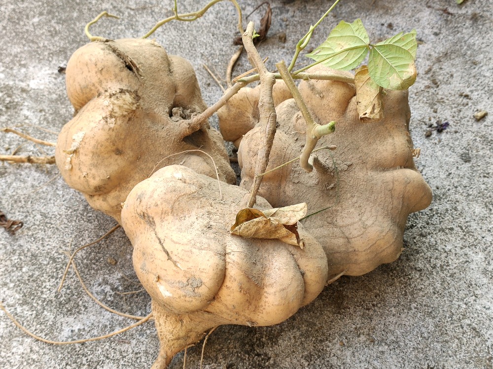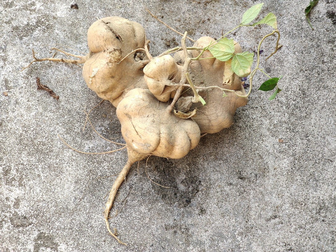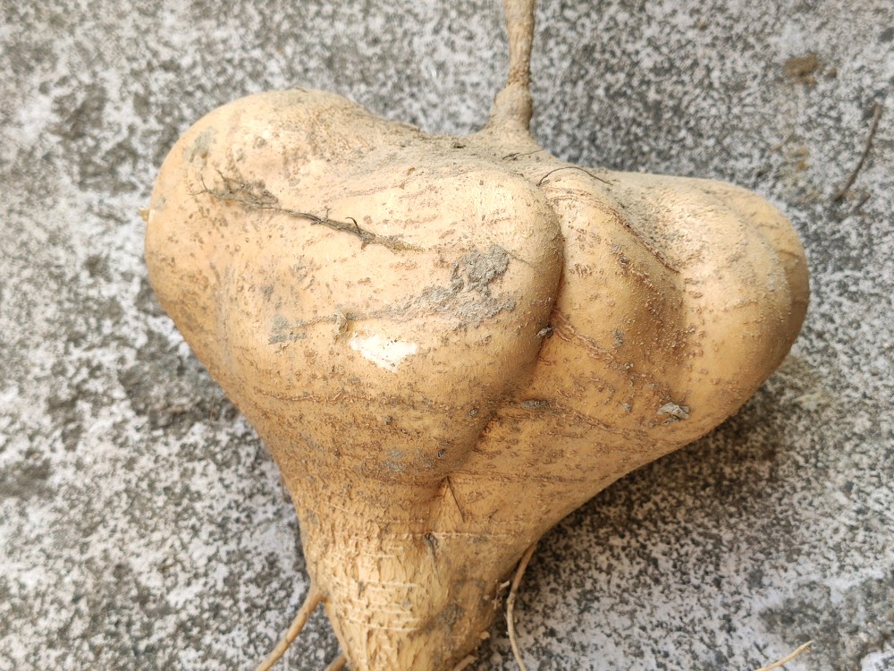 凉薯都挖回来了就剩这么几个,不过别看就这么几个,一个大着呢!我挑了那俩大的一称,好家伙两个居然一般重一个3斤3。