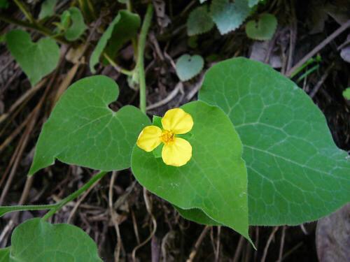 马蹄香,别名:冷水丹、高脚细辛、狗肉香,拉丁文名:Saruma henryi Oliv. 马兜铃科、马蹄香属多年生直立草本,被灰棕色短柔毛,根状茎粗壮,有多数细长须根。叶心形,顶端短渐尖,基部心形,两面和边缘均被柔毛;雄蕊与花柱近等高,花药长圆形,药隔不伸出;心皮大部离生,花柱不明显,柱头细小,着生于心皮腹缝线上。蒴果蓇葖状,成熟时沿腹缝线开裂。种子三角状倒锥形,背面有细密横纹。根状茎和根入药,治胃寒痛、关节疼痛;鲜叶外用治疮疡。