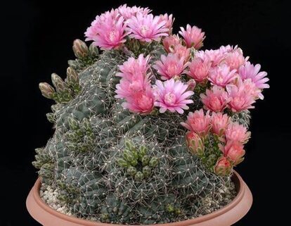 绯花玉(学名:Gymnocalycium baldianum (Speg.) Speg.)是仙人掌科裸萼球属多肉植物,植株呈扁球形,表皮墨绿色,刺针状,每个刺座有5枚灰色周刺,花生于球体顶端,夏季开花,花色有白、粉红、深红等。果实纺锤形,深灰绿色,种子黑色。