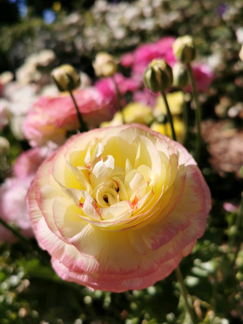 花毛茛Ranunculus asiaticus(L.)Lepech.,又名芹菜花,陆莲花,为毛茛科、花毛茛属多年生草本花卉