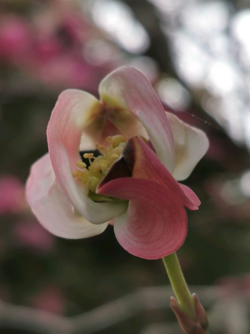 花序周围有四片大型的苞片,常被误认为是“花瓣”,苞片慢慢展开,姿态万千,如芭蕾舞