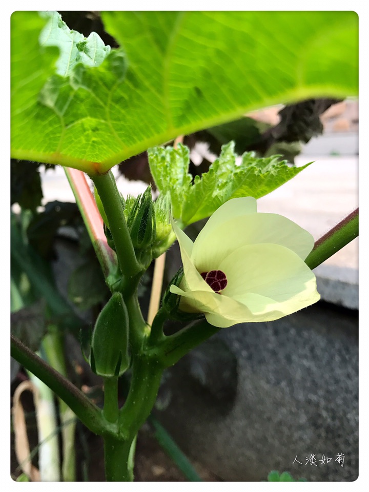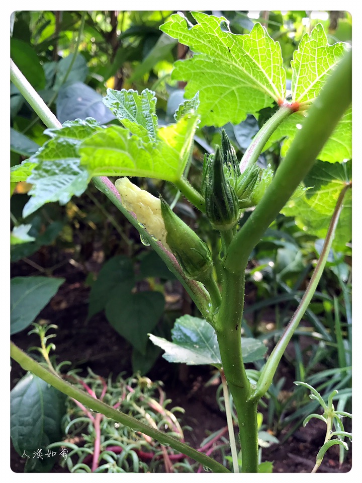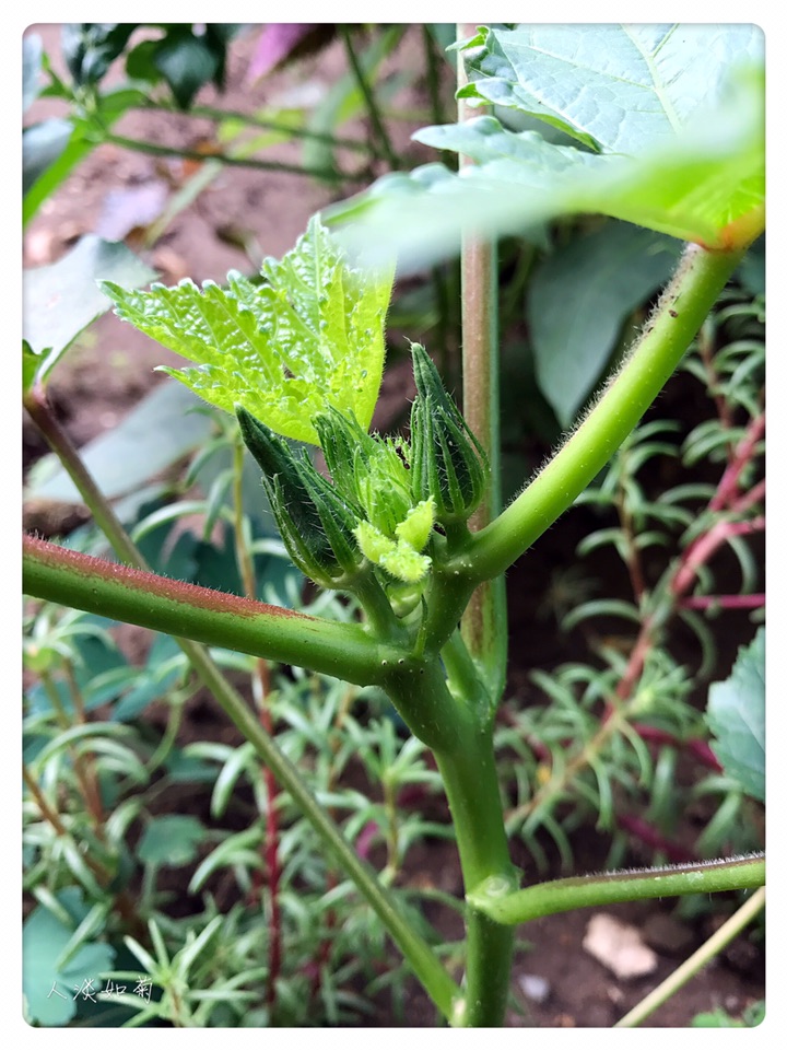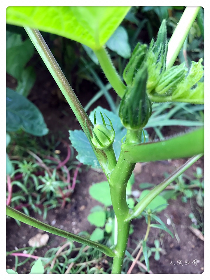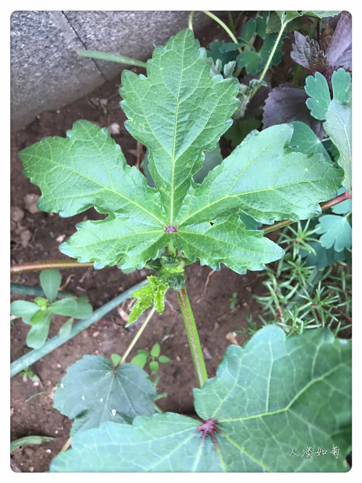 秋葵是今年初试的植物,春种未果,后移栽了三棵,长势良好。
