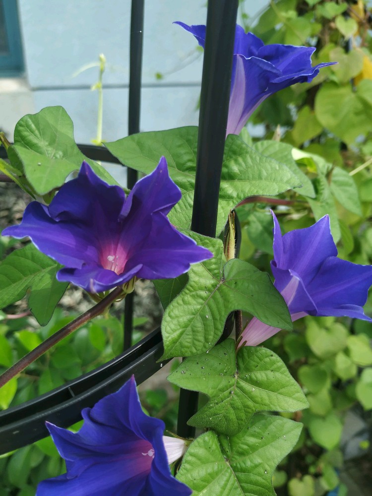 网上淘了几粒种子,刚开始只长叶子不开花,到后来倒也开的腻歪!花儿很大朵,颜色也娇艳,喜欢牵牛的进来瞧瞧,点个赞,留点评语也可以!😄