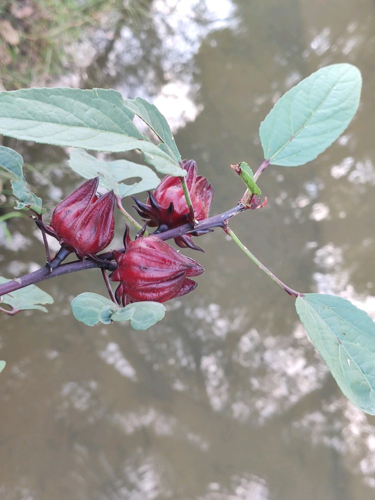 一般见它都是晒干后以花茶的形式出现,这次在家门口看到还是植株的玫瑰茄确实是个意外,想来它也是比较容易养活的植物,不然又如何在水边袅袅婷婷!