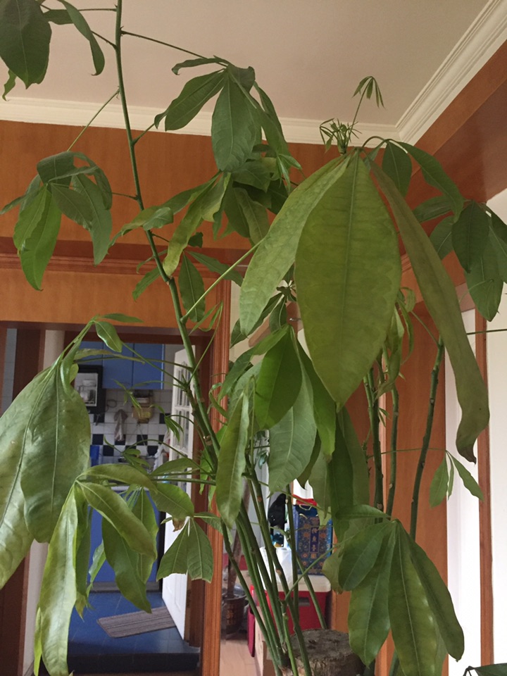 养了一年多的发财树最近不长新叶,枝头的新叶特别小。老叶子发黄脱落。半个多月才浇了点水,结果更黄了……