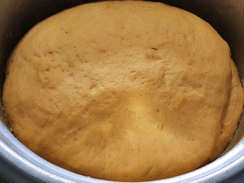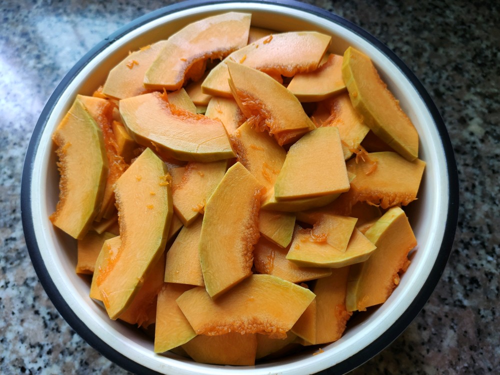 不甘心的我今天在老妈的鼓励下,又决定尝试下南瓜馒头。我原本也是想做个三两个试试手,老妈说做就多做点,大家都尝尝。并帮我挑了一个南瓜,削好后一称,我的乖乖,整整两斤!怕家里的面粉不够临时又去买了面粉,然后上锅蒸。