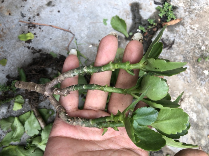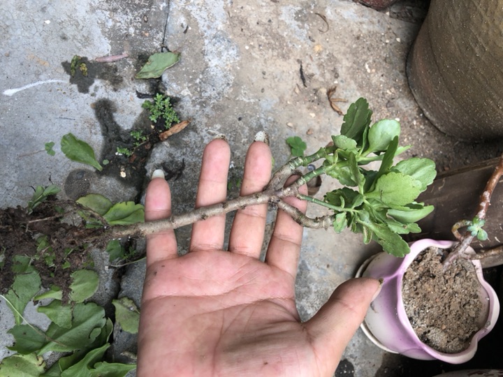 修一下黄叶,发现这个长寿花的根都长虫了。最简单的方法就是把给弄断!