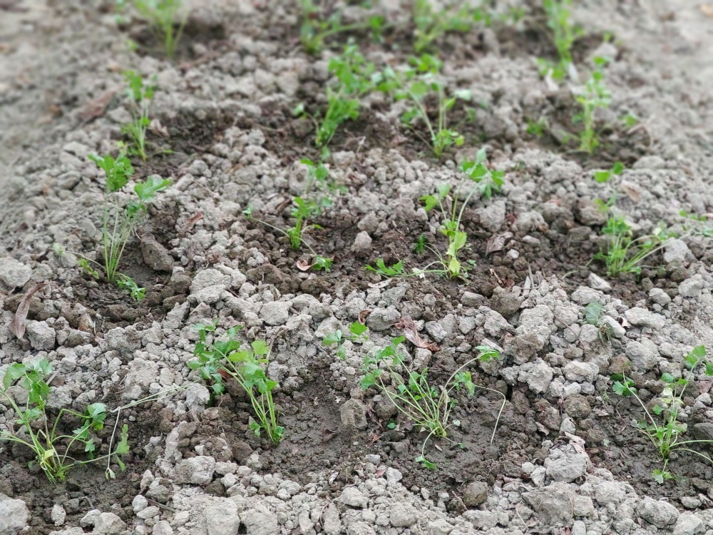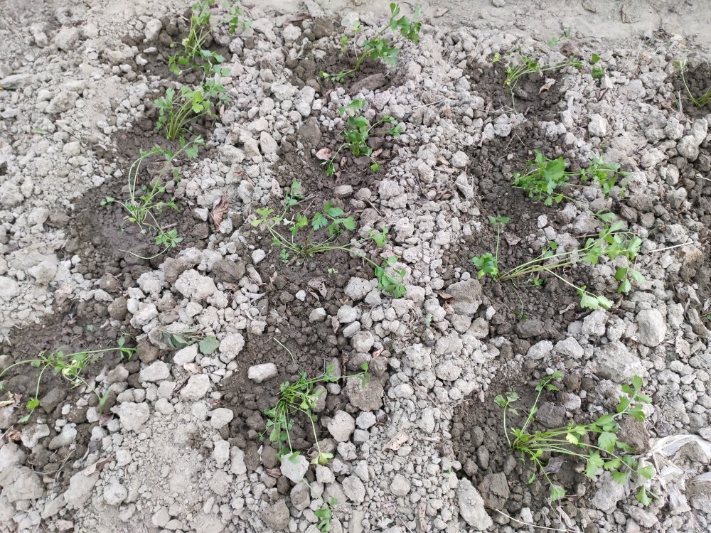 一直以为芹菜萝卜苗似的一根一个坑,看了老爸种菜才知道,原来芹菜是一小揪一小揪的种,总共是24个坑,那就相当于种了24棵。