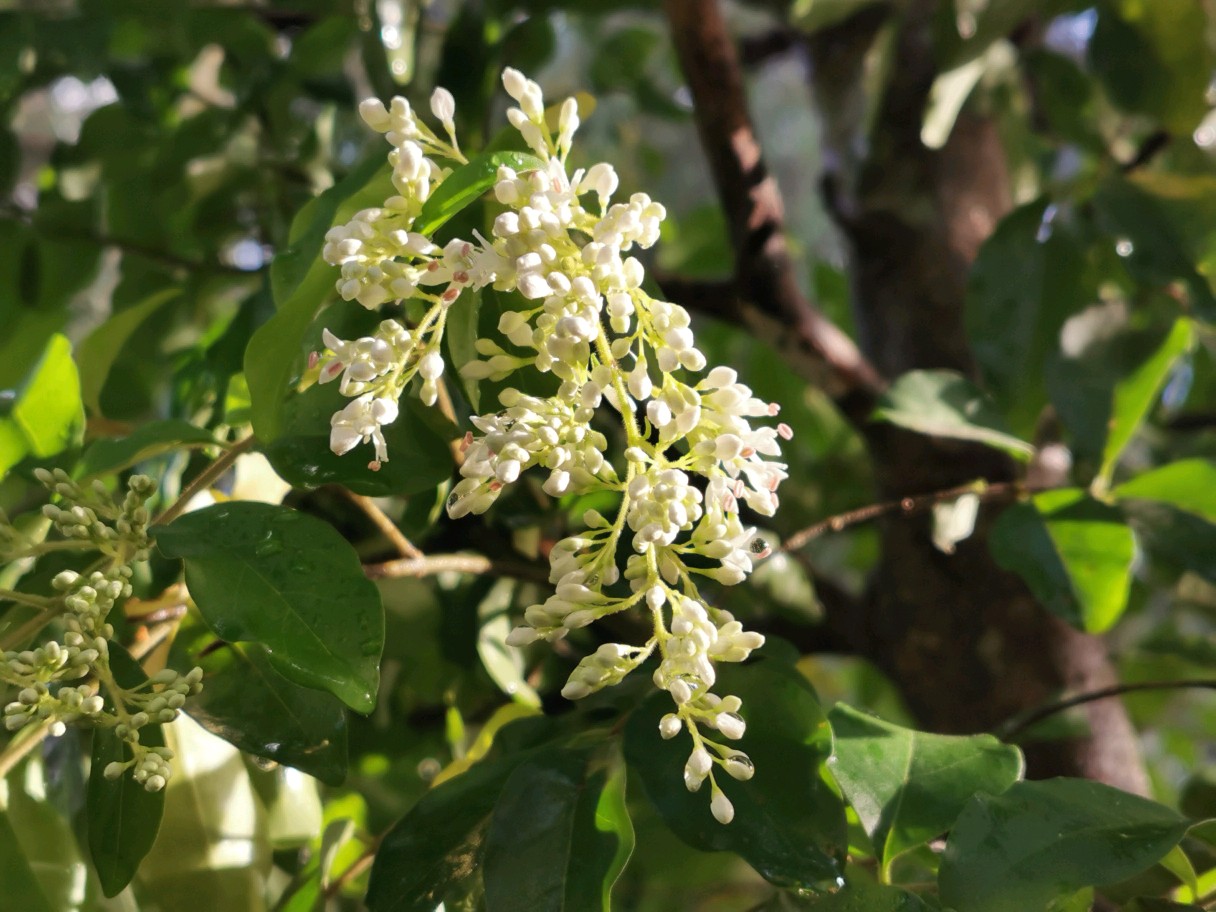 每年春天,就是女贞的花期,前几天经过,一注晨光投正女贞白色的花上,洁白如雪