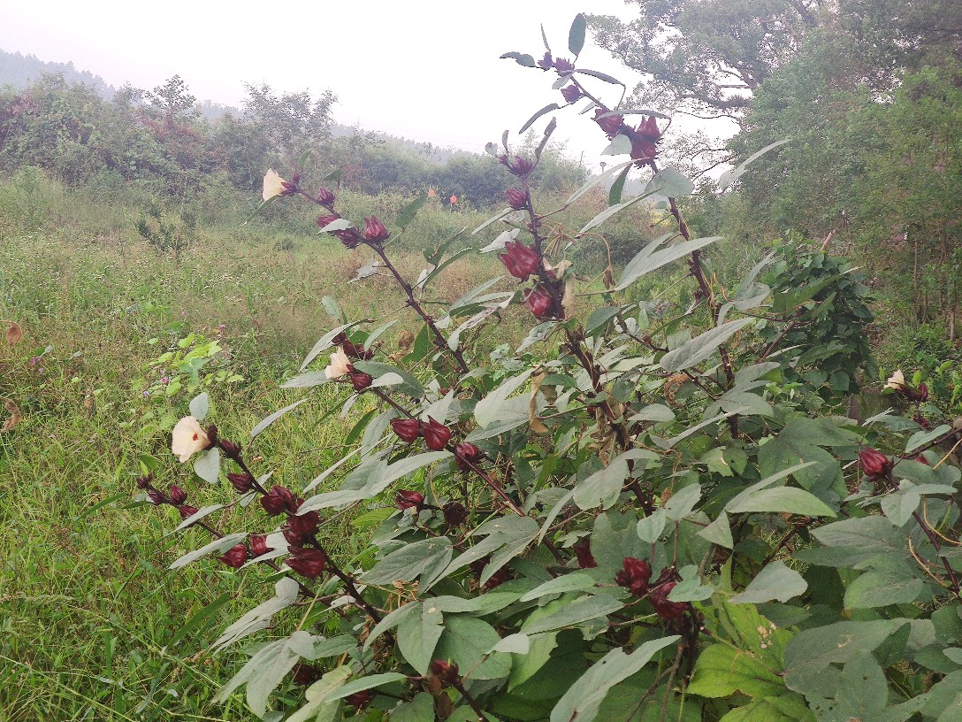 上次见了玫瑰茄却没看到它开花的样子,心里便一直对它念念不忘,总想着哪个早晨去河边看看,又唯恐早上过往行人太多有所顾忌。难得一早下了点蒙蒙细雨,直至中午也是阴天,终于在饭后踱步去了河边得以见到盛开的玫瑰茄花。