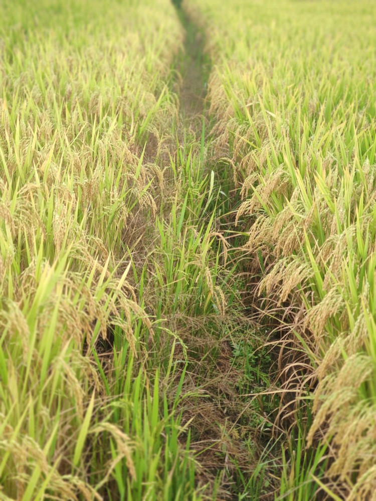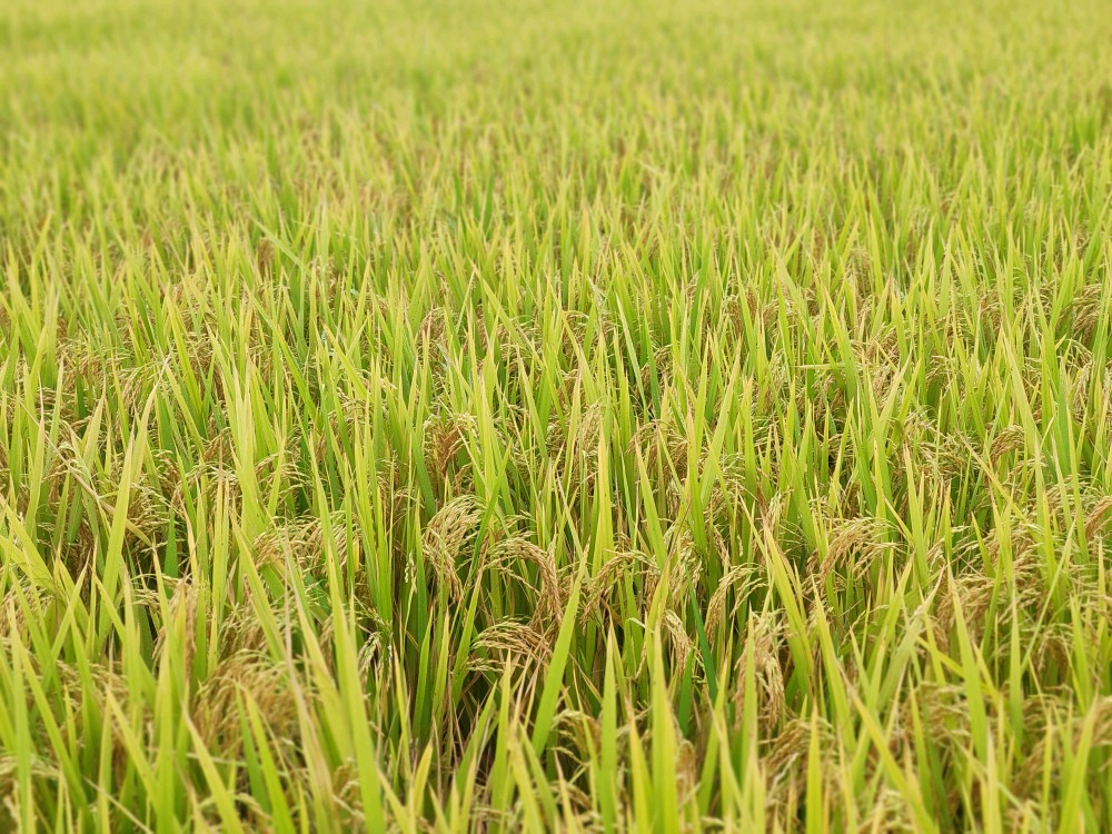 我去的地段铺天盖地种植的都是稻子,放眼望去,一片金黄,满满的都是收获的味道