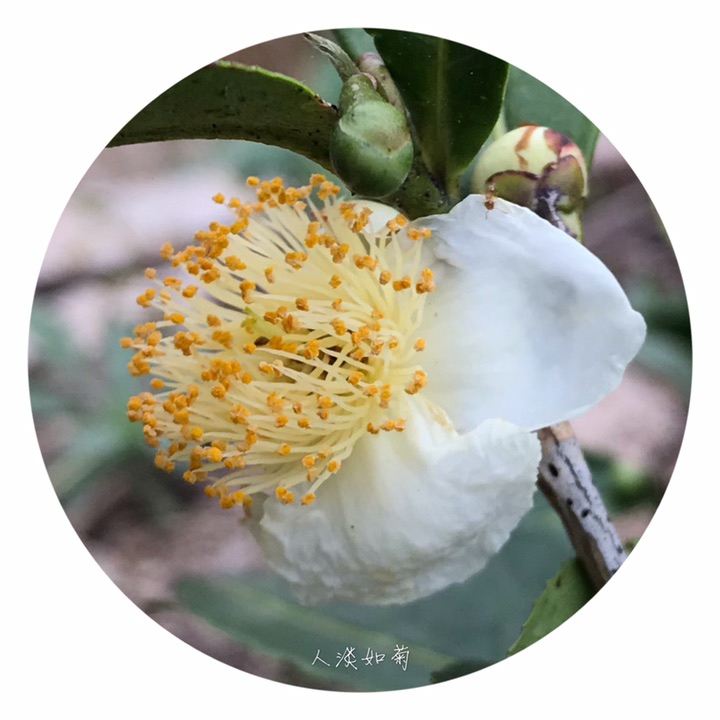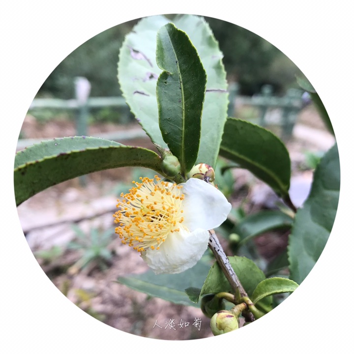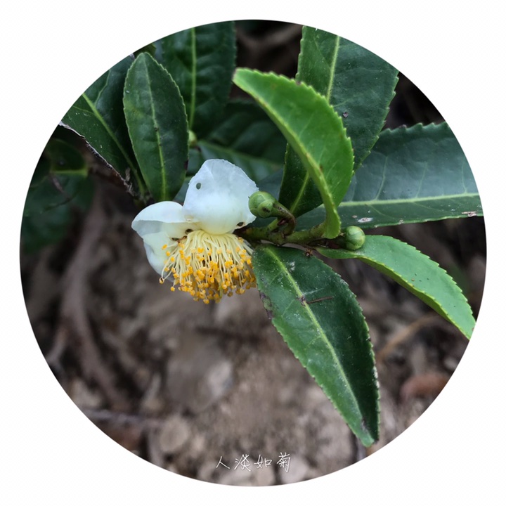 茶,(学名:Camellia sinensis (L.) O. Ktze.),别称槚、茗、荈、茶树、茶叶、元茶 。山茶科山茶属灌木或小乔木,嫩枝无毛。叶革质,长圆形或椭圆形,先端钝或尖锐,基部楔形,上面发亮,下面无毛或初时有柔毛,边缘有锯齿,叶柄无毛。花白色,花柄有时稍长;萼片阔卵形至圆形,无毛,宿存;花瓣阔卵形,基部略连合,背面无毛,有时有短柔毛;子房密生白毛;花柱无毛。蒴果3球形或1-2球形,高1.1-1.5厘米,每球有种子1-2粒。花期10月至翌年2月。