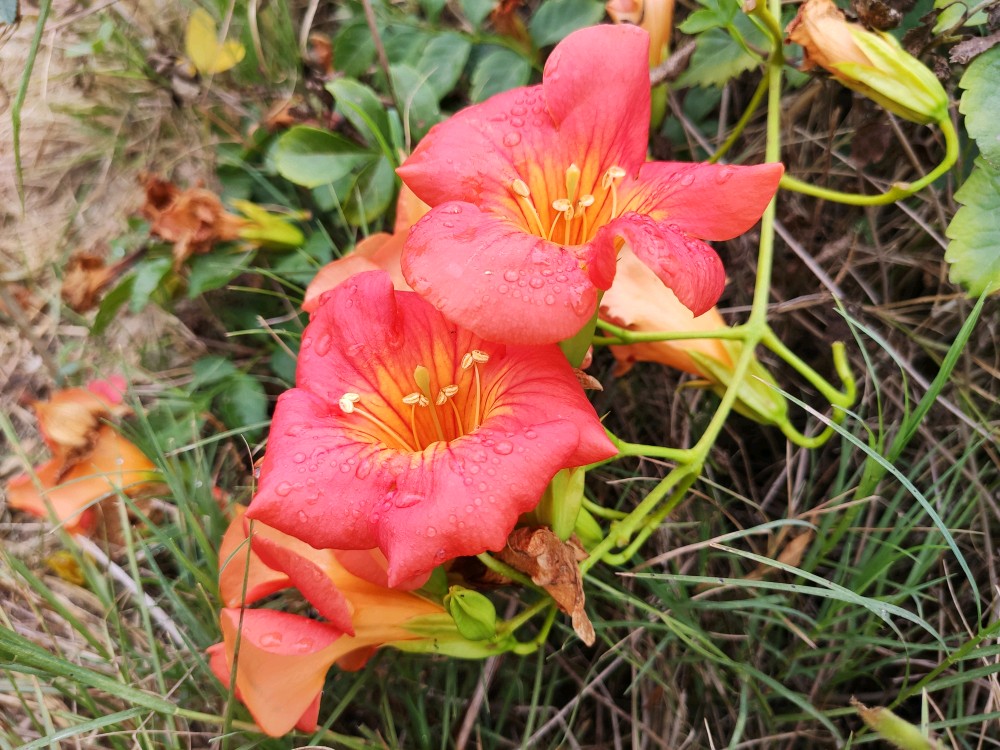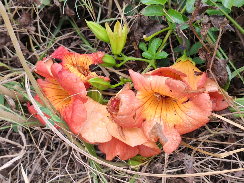 同彼岸花一样也是专属于小时候的神秘花朵,大人们也总是对我们说这花不能闻,要烂鼻子的。记得之前的凌霄生长在小河边,小河边还有各种树,凌霄花就这么借着树干沿着河道一路攀爬,等它开花的时候,记忆中的小河一下便惊艳起来。