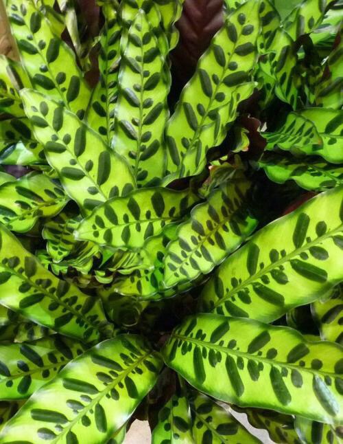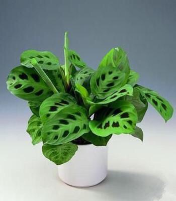 豹斑竹芋叶面的斑块像金钱豹身上的斑块,故名豹斑竹芋。其叶色艳丽多彩,很耐人观赏。豹斑竹芋还有一个独特的习性,即在夜幕降临时,叶片会慢慢上举合拢,好似进入梦乡,黎明时又同人们一样苏醒而再展丰姿,供人们观赏。
