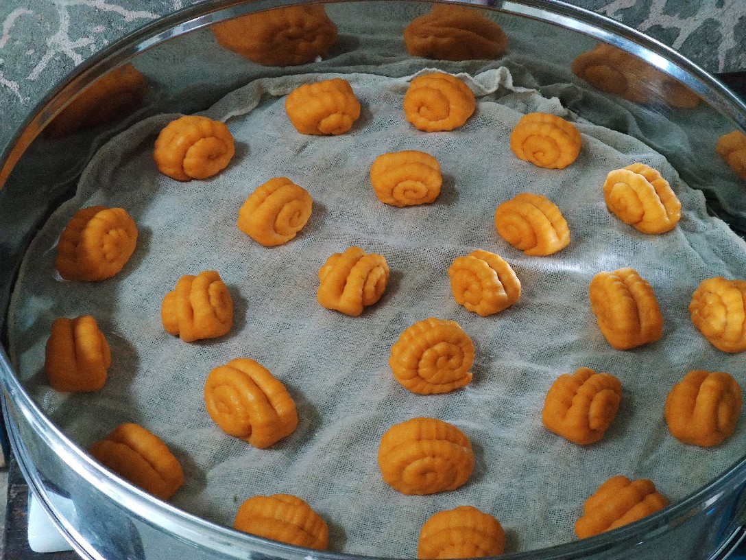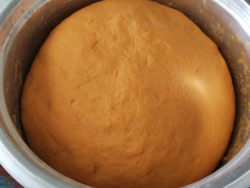 本来今天没打算做南瓜馒头的,看中午的太阳还挺暖。反正在家也没事儿,就当练练手吧。