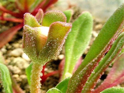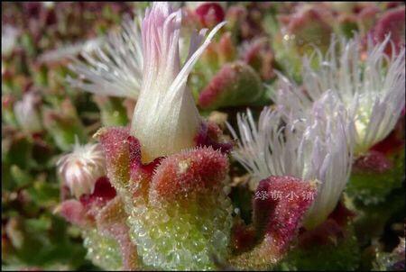 冰叶日中花(学名:Mesembryanthemum crystallinum Linn.)是番杏科、日中花属的一年生或二年生草本。茎匍匐,叶互生,扁平,肉质,卵形或长匙形,紧抱茎,有发亮颗粒。花单个腋生,几无花梗;花瓣多数,比萼片长,花白色或浅玫瑰红色,果实为蒴果。