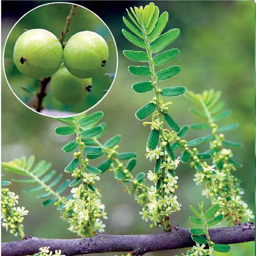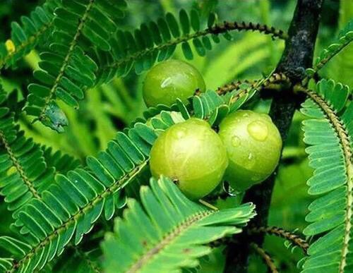 余甘子(Phyllanthus emblica Linn.)是大戟科叶下珠属植物,乔木,高达23米,胸径50厘米;树皮浅褐色;枝条具纵细条纹,被黄褐色短柔毛。叶片纸质至革质,二列,线状长圆形,长8-20毫米,宽2-6毫米,顶端截平或钝圆,有锐尖头或微凹,基部浅心形而稍偏斜,上面绿色,下面浅绿色,干后带红色或淡褐色,边缘略背卷;侧脉每边4-7条;叶柄长0.3-0.7毫米;托叶三角形,长0.8-1.5毫米,褐红色,边缘有睫毛。花期4-6月,果期7-9月。