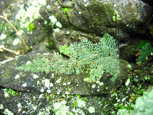 线裂铁角蕨属铁角蕨科蕨类植物,植株高10-25 厘米。根状茎直立,先端密被鳞片;鳞片线形,黑色,有棕色狭边和虹色光泽,厚膜质,边缘略有齿牙。叶簇生;叶柄圆形,乌木色,有光泽,光滑;叶片长三角形,细裂,渐尖头,三回羽状;下部的对生,向上互生,斜展,有短柄或近无柄,基部一对略长。