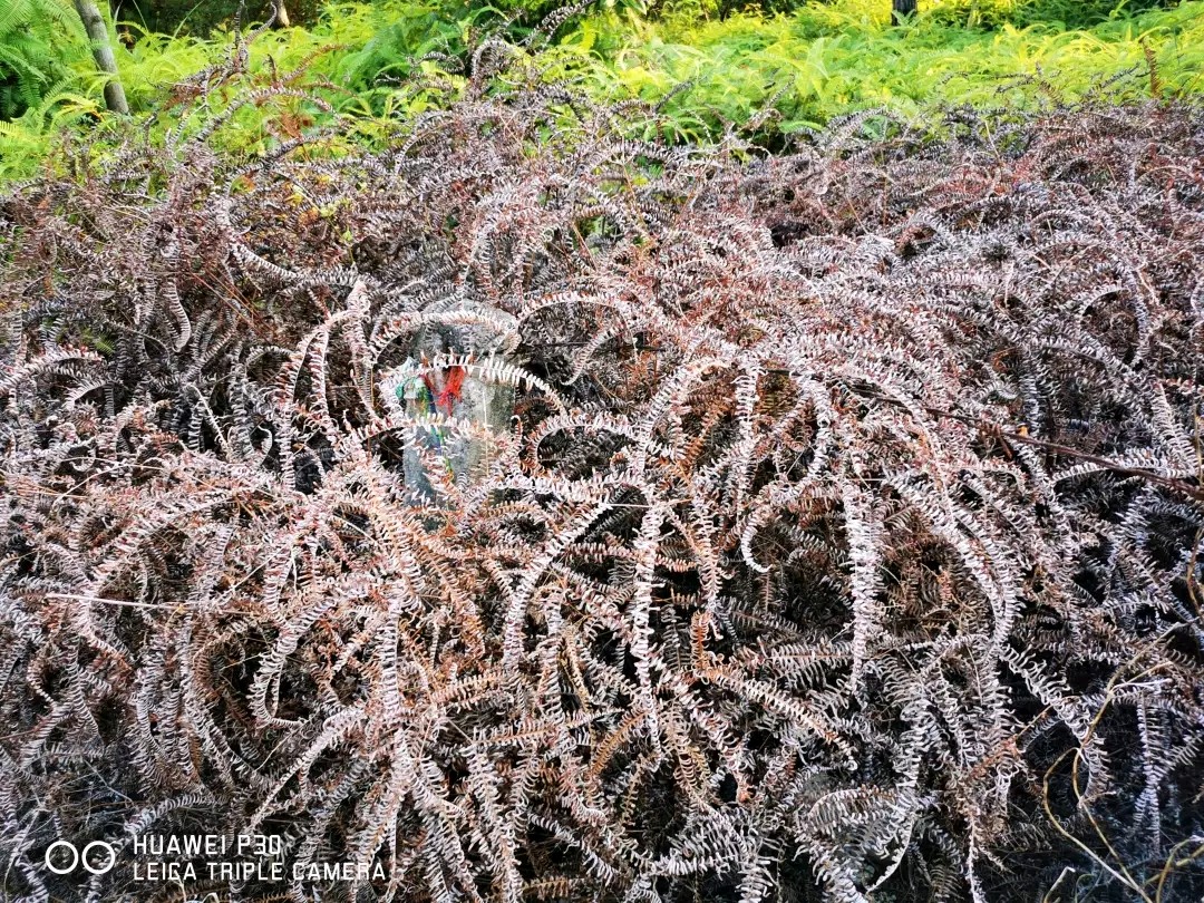 有趣的是,如果你看到山坡长着芒萁那可以判断该土壤呈酸性哟。这是因为芒萁对土壤的酸碱性要求很高,它只生长于酸性红壤的山坡上,因此被称为“酸性土壤指示植物”,与芒萁对生态条件考察具有重要意义。酸性土壤下生长的芒萁,新阵代谢枯萎之后地面上会有一层很厚的枯叶,农民伯伯往往会将它们全都砍倒,集中进行焚烧,其烧掉后的灰烬就是一种天然肥料--草木灰。