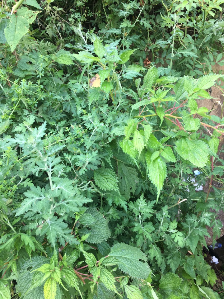 右边是荨麻一类的,碰到后皮肤会过敏。左边是某种蒿,用它的叶挤出汁水,涂抹过敏的皮肤,就没事了。这两种植物相生相克,这就是大自然的奇妙!