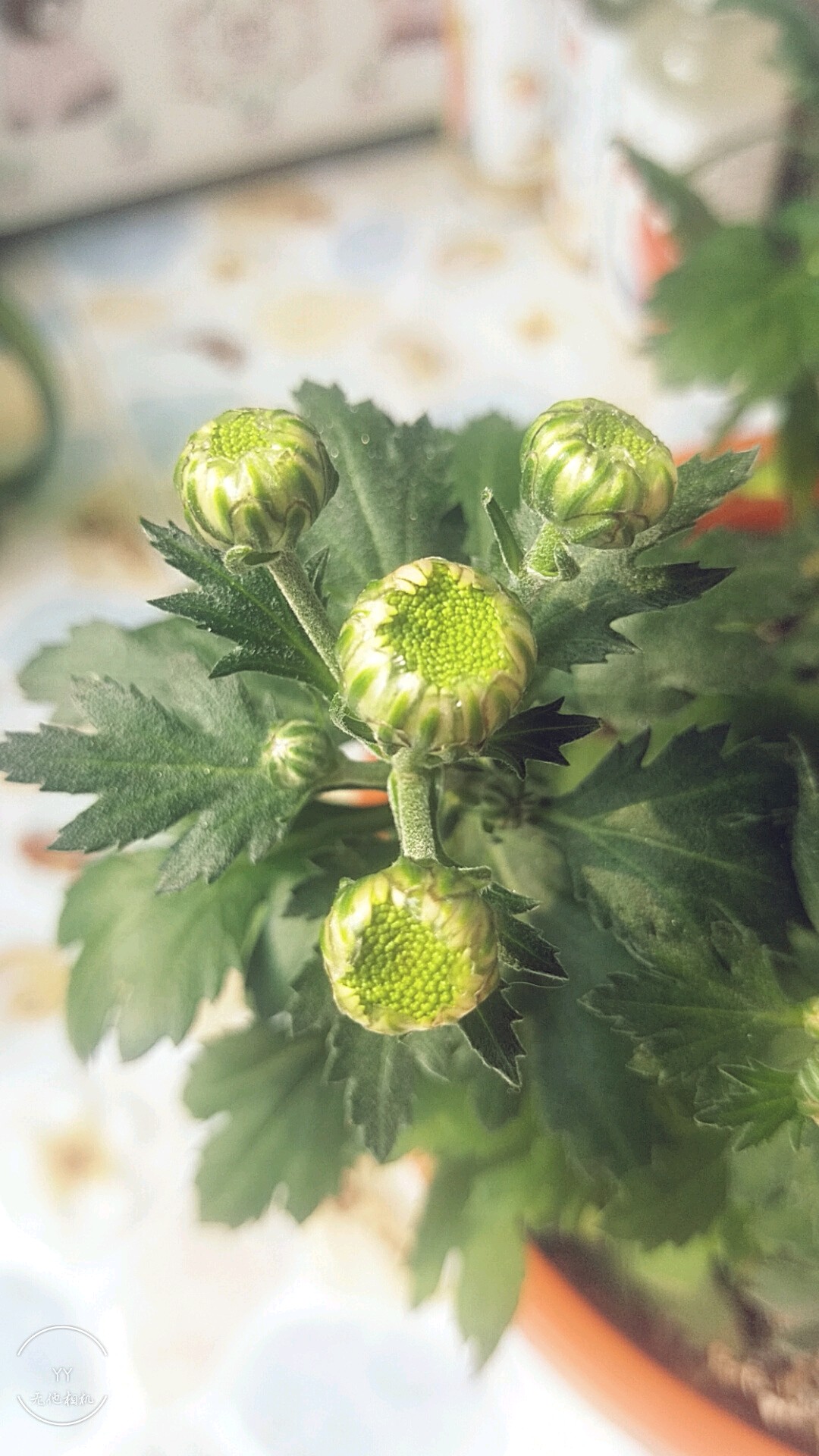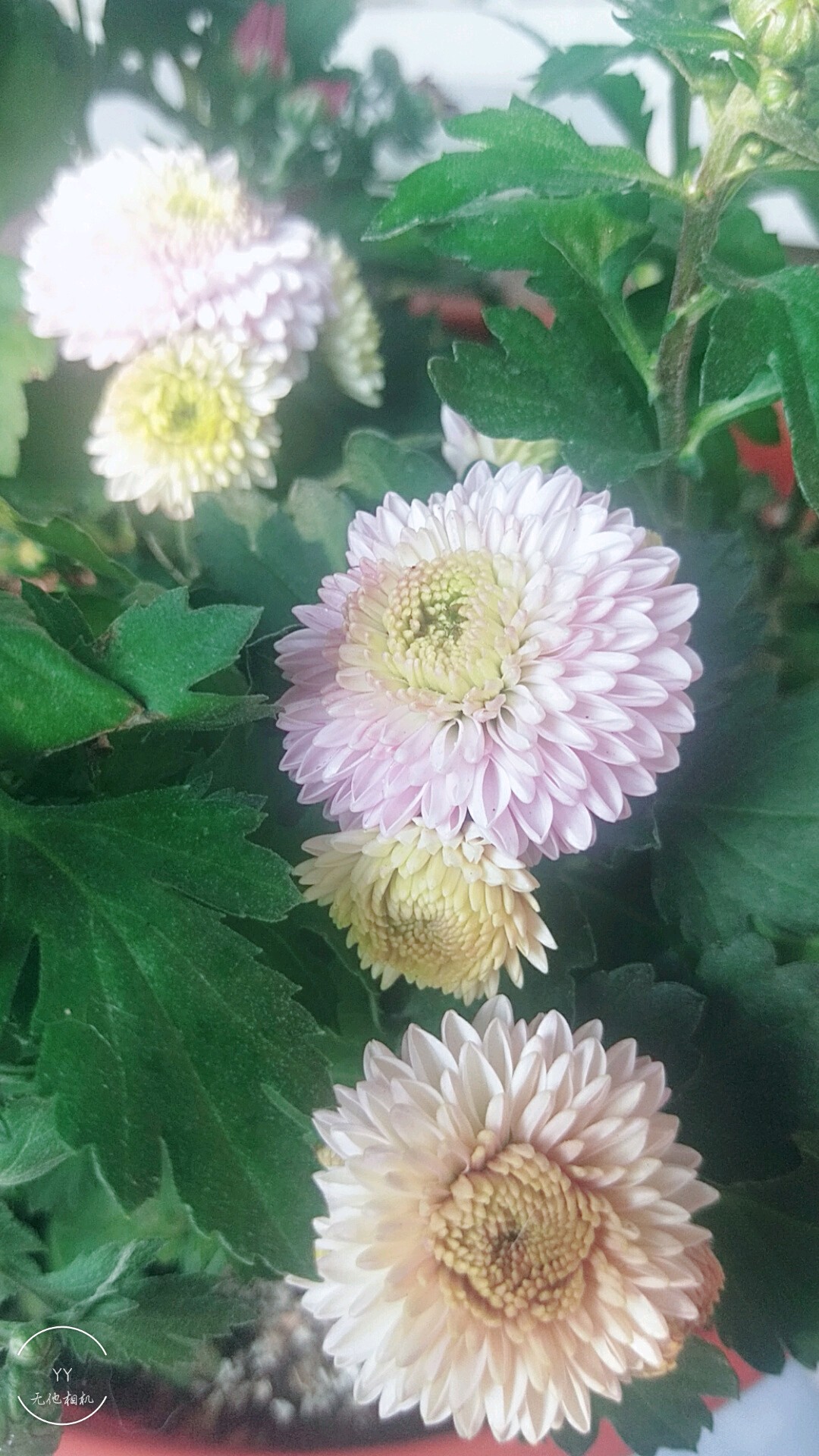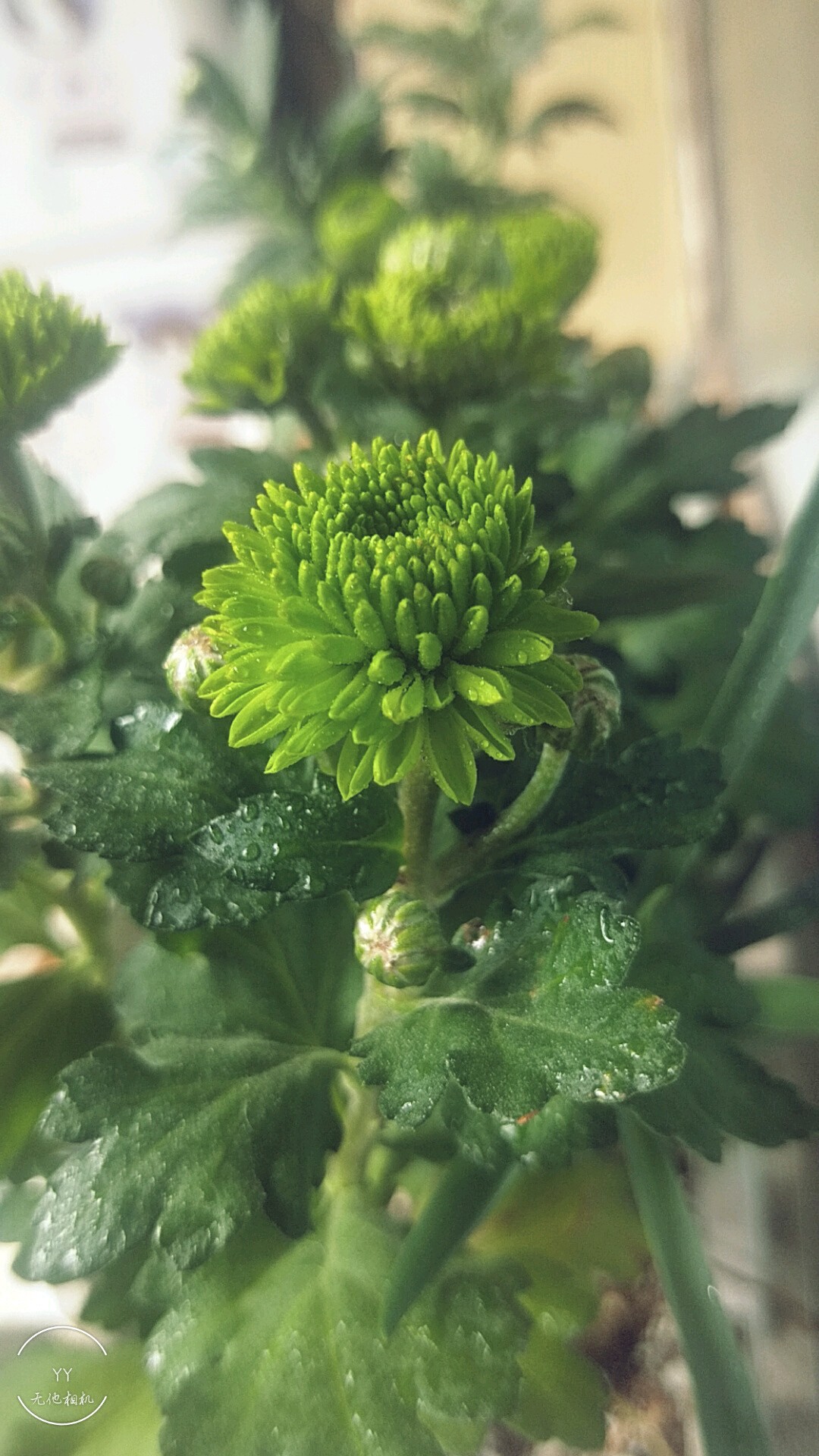 就是乒乓菊,如果你不疏花蕾,也开不成乒乓菊的模样。要疏花蕾的,一枝上只让它开一朵,其他花苞都去掉,营养集中供给,才能开成一个球状。如果花骨朵多了,只能开成包子状。