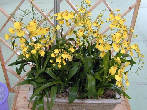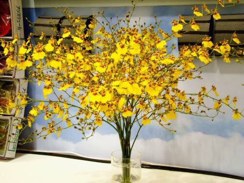 文心兰(Oncidium hybridum),又名吉祥兰,跳舞兰、舞女兰、金蝶兰、瘤瓣兰等,叶片1~3枚,可分为薄叶种,厚叶种和剑叶种。兰科中的文心兰属植物的总称,本属植物全世界原生种多达750种以上,而商业上用的千姿百态的品种多是杂交种,植株轻巧、潇洒,花茎轻盈下垂,花朵奇异可爱,形似飞翔的金蝶,极富动感,是世界重要的盆花和切花种类之一。它的故事波及深远,相传宋美龄访白宫之时,一见钟情于此花,发现花瓣像极了中国汉字中的“吉”字,寓意吉祥,因此取名为“吉祥兰”。