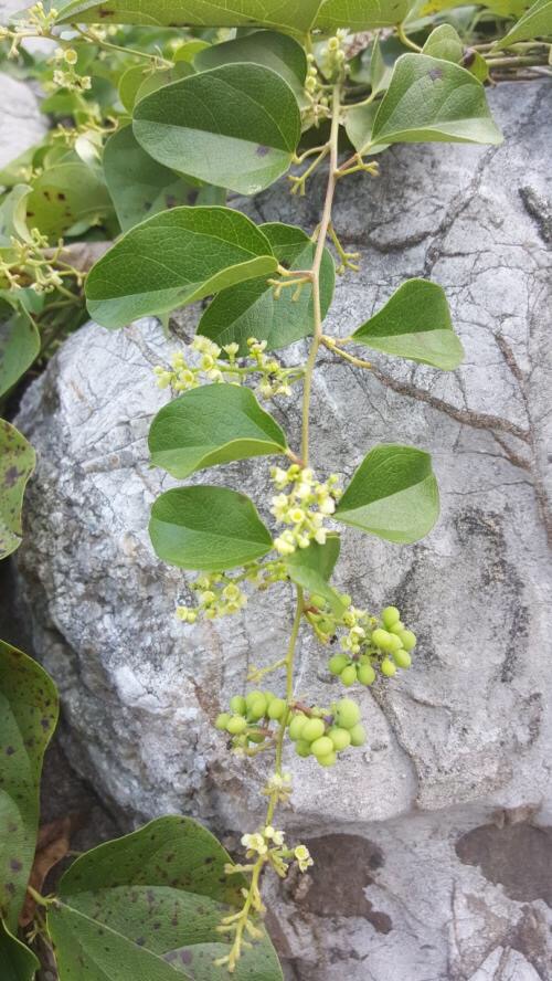 木防己(学名:Cocculus orbiculatus (L.) DC.)是防己科木防己属植物,木质藤本;小枝被绒毛至疏柔毛,或有时近无毛,有条纹。叶片纸质至近革质,形状变异极大,长通常3-8厘米,很少超过10厘米。聚伞花序少花,腋生,或排成多花,狭窄聚伞圆锥花序。核果近球形,红色至紫红色,径通常7-8毫米;果核骨质,径约5-6毫米,背部有小横肋状雕纹。