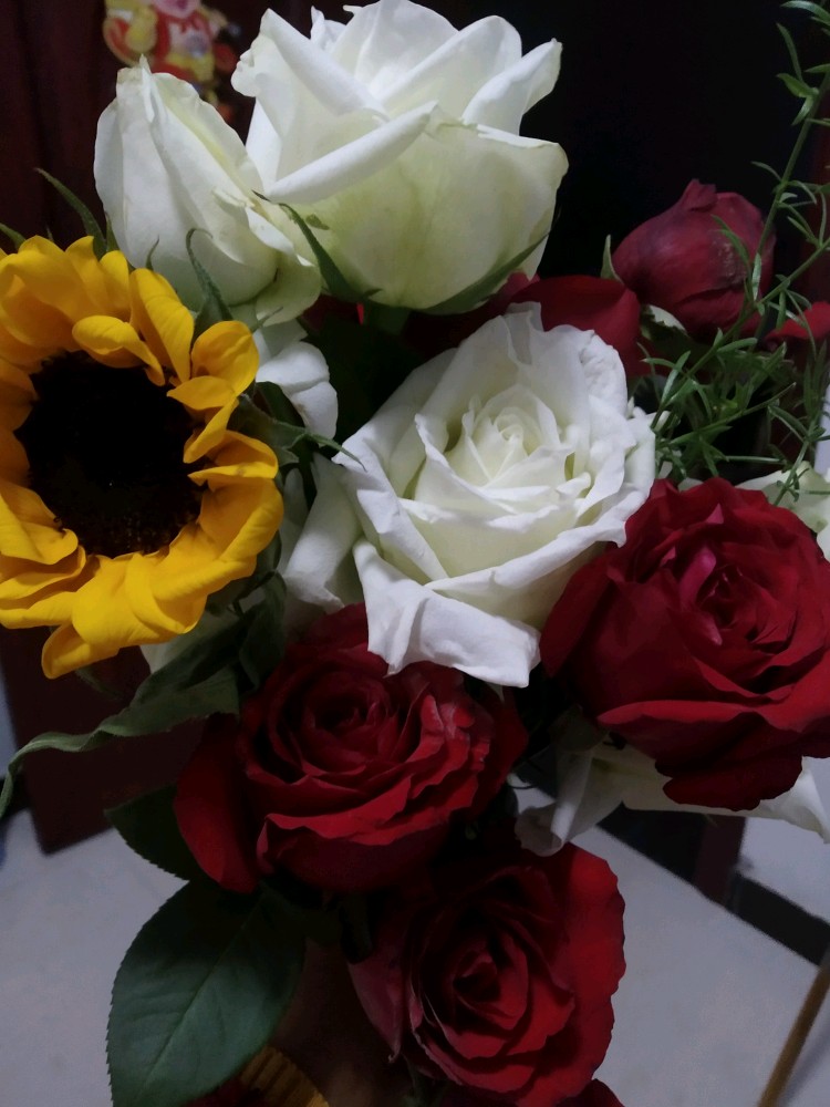 我插瓶子里的玫瑰花很香呢!或者说是月季?反正我看花店的玫瑰花都是这种,花朵又大又香,花形也美!