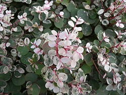 彩叶山漆茎株高50-120公分,分枝较多,顶端优势不明显,枝条柔软。叶片有不规则斑纹,新叶有明显粉红色斑,老叶呈绿色或乳白色斑纹,酷似经过人工漆饰,优美而别致。