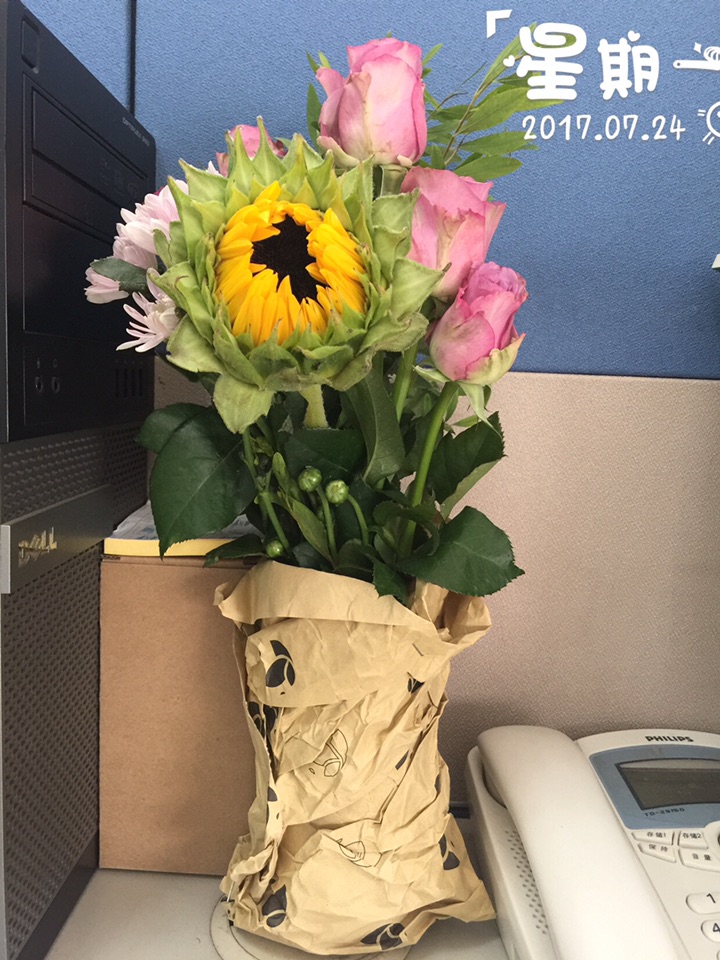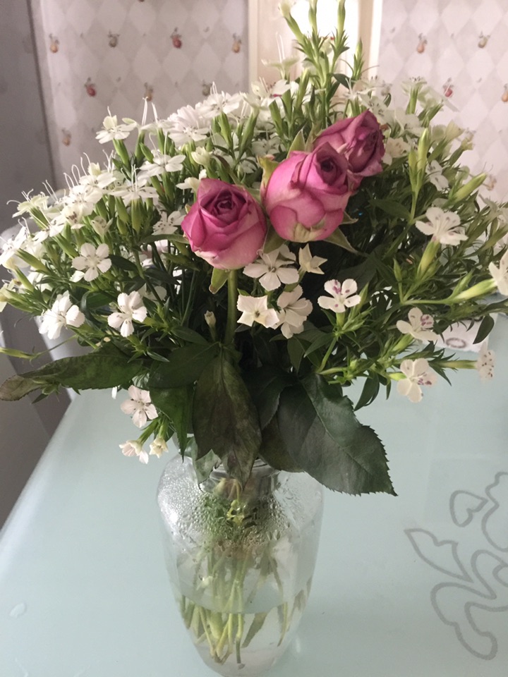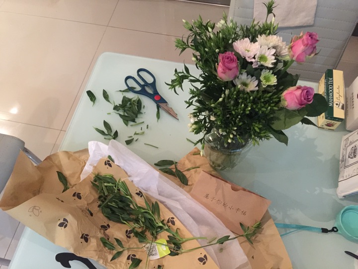 没人送花,那就自己买喽!在关注的卖花的电商平台买了“每周一花”,每个周一都会收到包装精致的不知道盒子里装的是什么的随机花束。自己剪枝,然后看心情摆弄成各种布局造型……但是,网购花怎么跟网购衣服一样,买家秀和卖家秀差距怎么就辣么大!!!