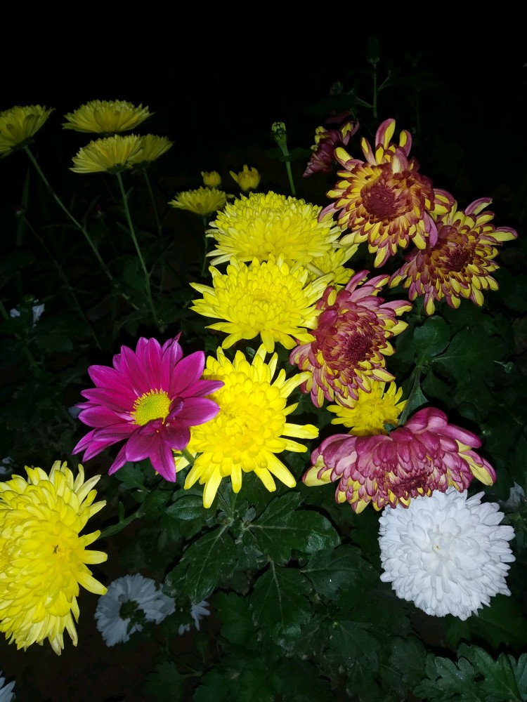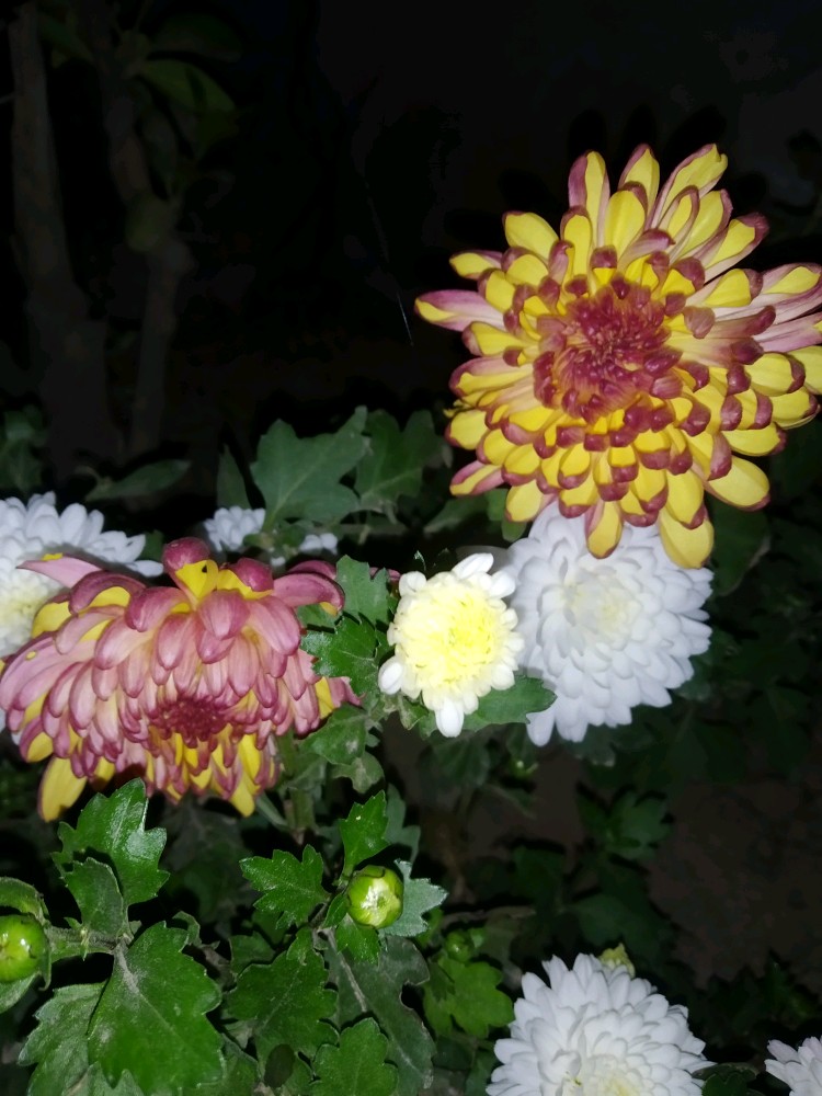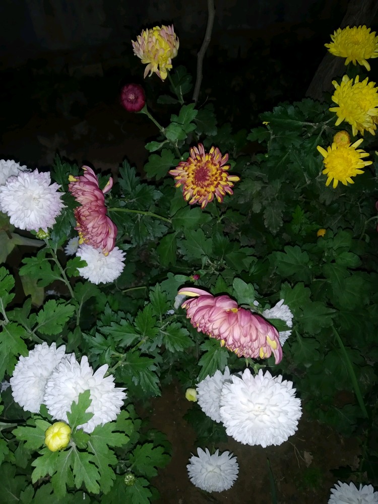 朋友们晚上好!请你欣赏夜色中的菊花: