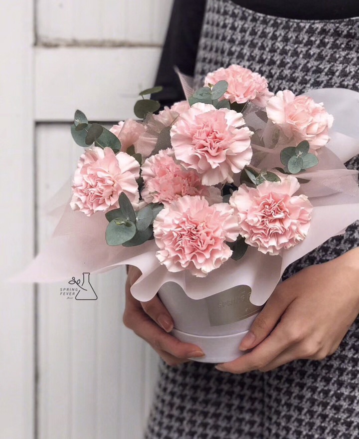 康乃馨,原名:香石竹,拉丁文名:Dianthus caryophyllus.又名:狮头石竹、麝香石竹、大花石竹,拉丁文名:Dianthus caryophyllus L. 石竹科、石竹属多年生草本,高40-70厘米,全株无毛,粉绿色。茎丛生,直立,基部木质化,上部稀疏分枝。叶片线状披针形,顶端长渐尖,基部稍成短鞘,中脉明显,上面下凹,下面稍凸起。花常单生枝端有香气,粉红、紫红或白色;花梗短于花萼;宽卵形,顶端短凸尖,花萼圆筒形,萼齿披针形,边缘膜质;瓣片倒卵形,顶缘具不整齐齿;雄蕊长达喉部;花柱伸出花外。蒴果卵球形,稍短于宿存萼。花期5-8月,果期8-9月