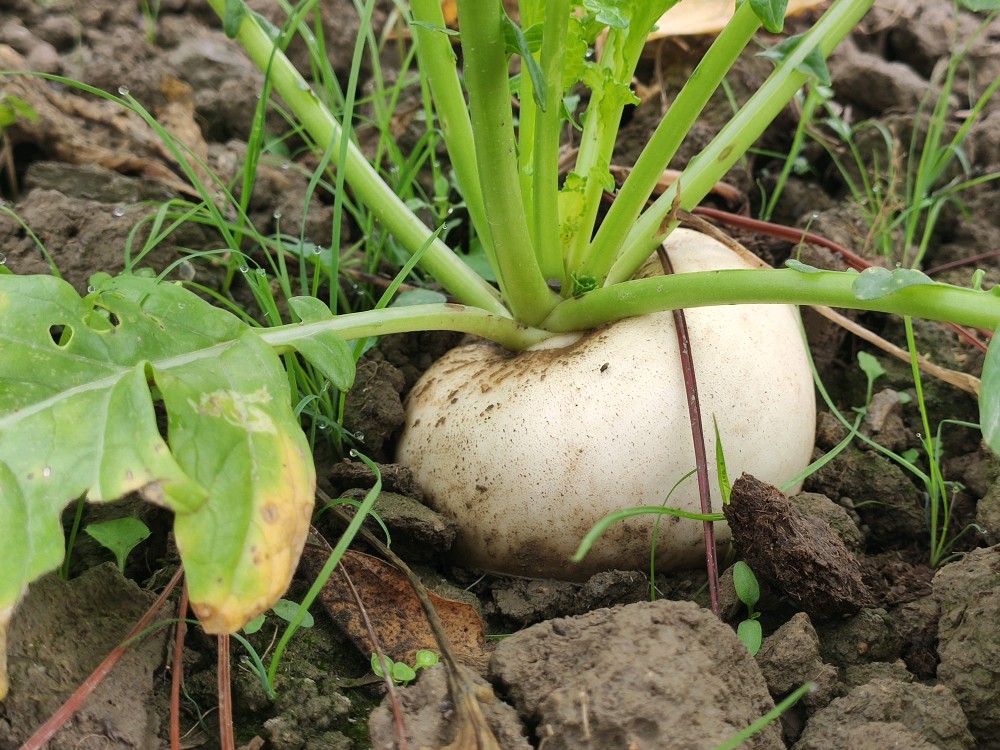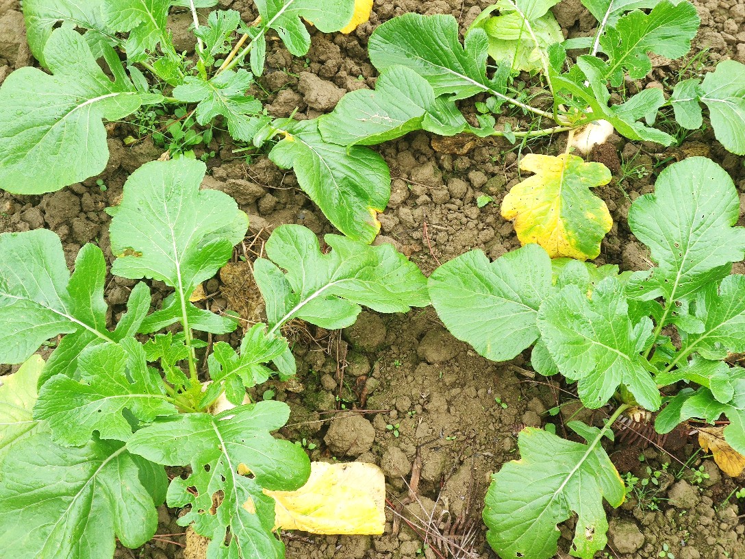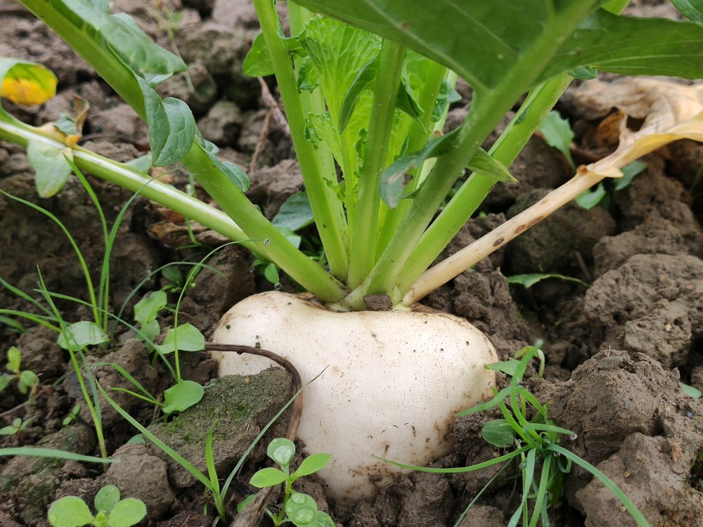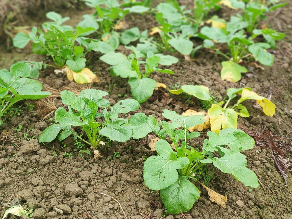 虽说萝卜后续死了好多棵,可活下来的这些长的都还算不错。你看,白白胖胖的小萝卜都已经浮出地面了,想想这萝卜拔起来应该是毫不费力的