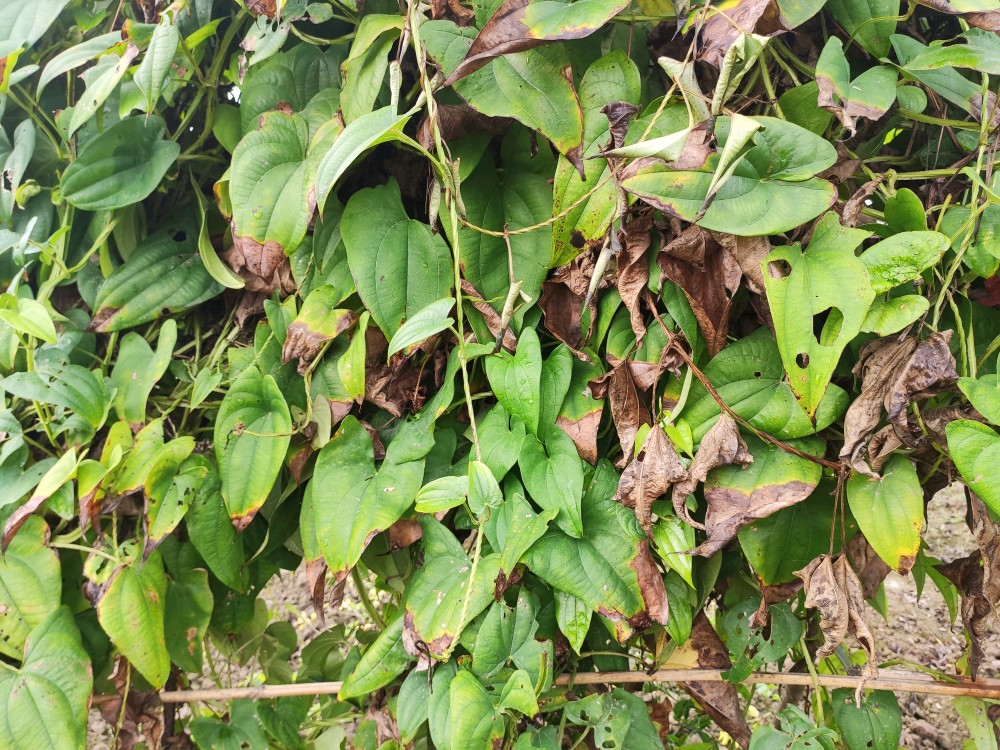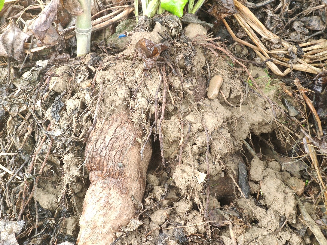 你看这一棵长的多好,硕大的脚板薯直接把地面都给拱起来了。这是去年留家里吃的脚板薯发芽了,然后说别浪费埋土里看看能不能活,结果却是长的最好的一个