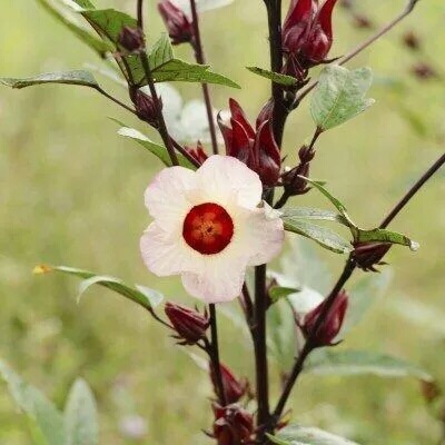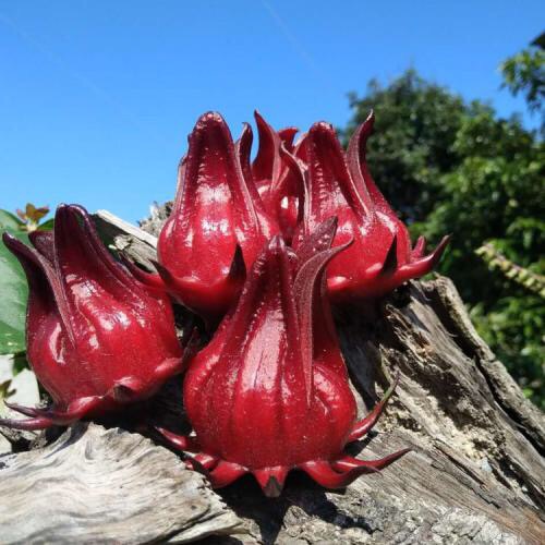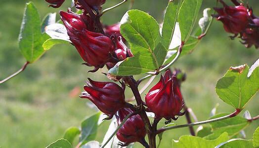 玫瑰茄为锦葵科植物玫瑰茄的共萼。又名洛花神、烙花神、烙神花、洛神花等,11月中、下旬,叶黄籽黑时,将果枝剪下,摘取花萼连同果实,晒1天,待缩水后脱出花萼,置干净草席或竹箩上晒干。