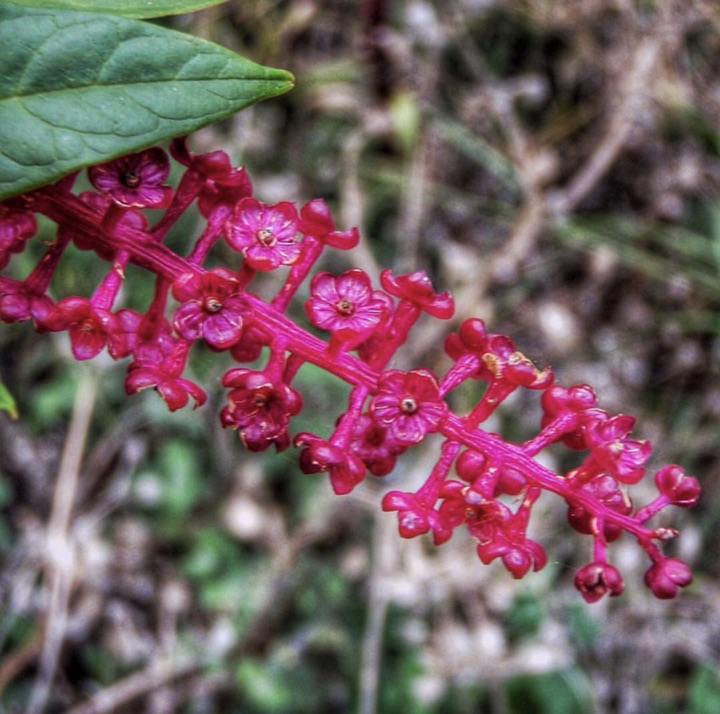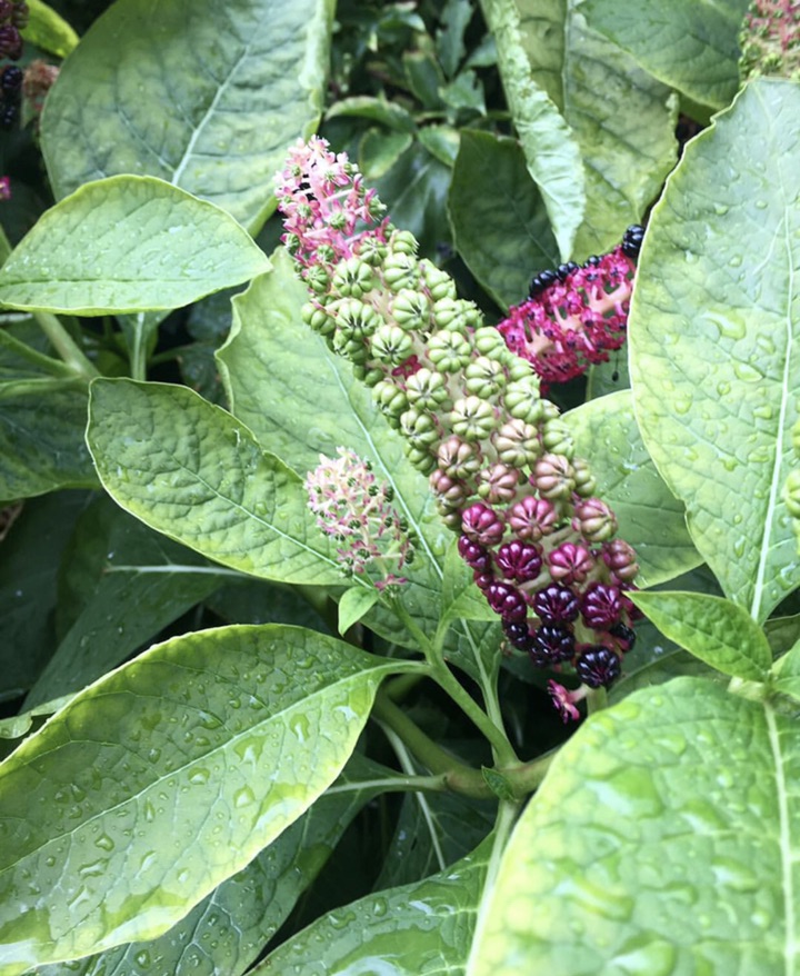 商陆,商陆科商陆属,多年生草本,春初发苗,叶卵形而大。夏季开红紫或白色小花。入秋结实,实多肉,赤黑色。嫩叶可食,其根有毒,可供药用。