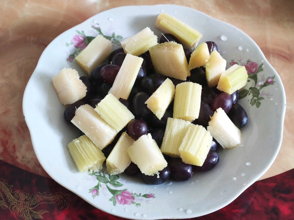 这甘蔗是真硬啊,看外表就跟竹子似的,吃着费劲不过确实甜~