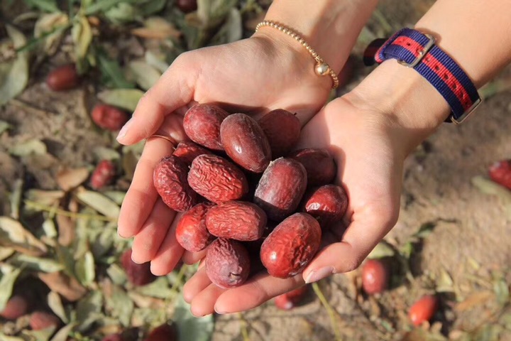 现在市场上广受消费者喜爱的灰枣就是若羌枣在成熟变红之前,颜色发灰而得名,所以也被称为若羌灰枣。灰枣果实呈长倒卵形,果皮是鲜红色,果核小果肉厚,而且干枣的果肉致密,非常富有弹性,跟一般的红枣比起来,吃起来要甜。灰枣具有丰富的营养成分,富含较多的蛋白质、糖类,还有人体生长所需要的20种氨基酸,被人们美赞为“维生素丸”和“矿物质元素库”,具有很高的营养价值和药用价值。