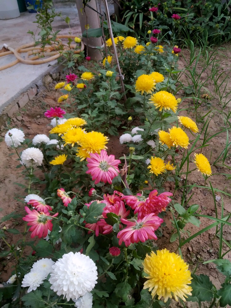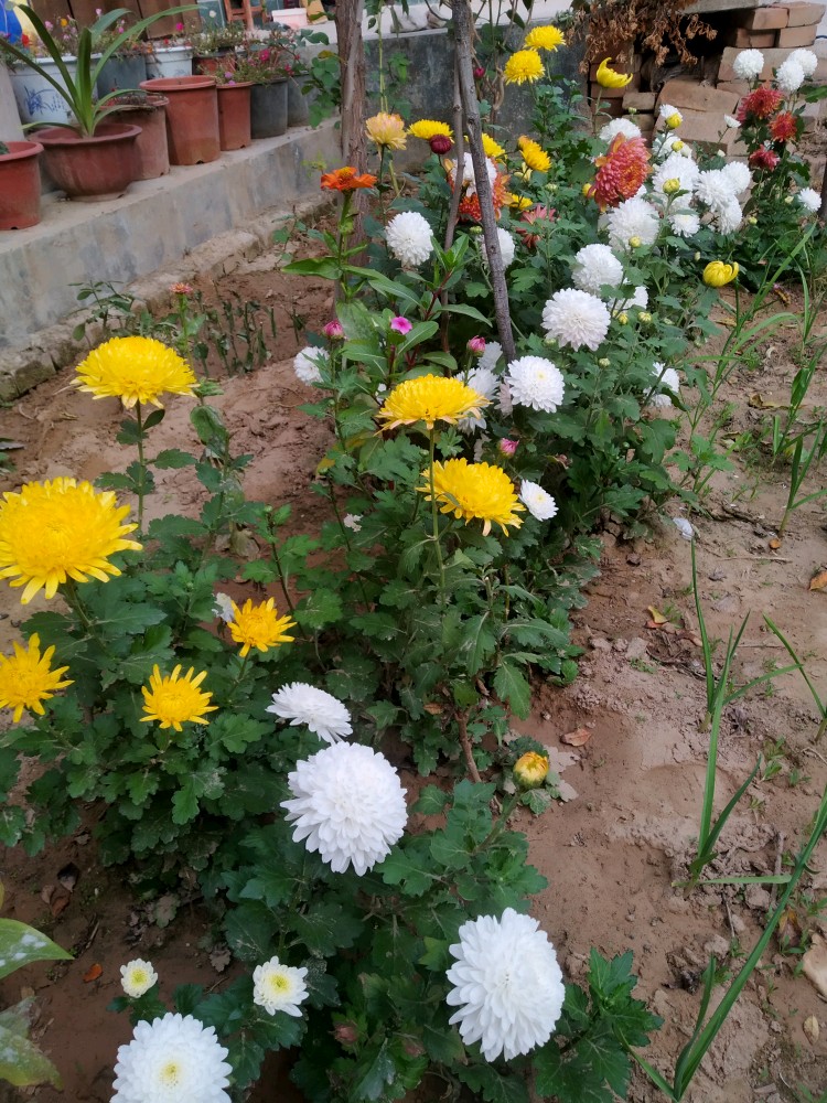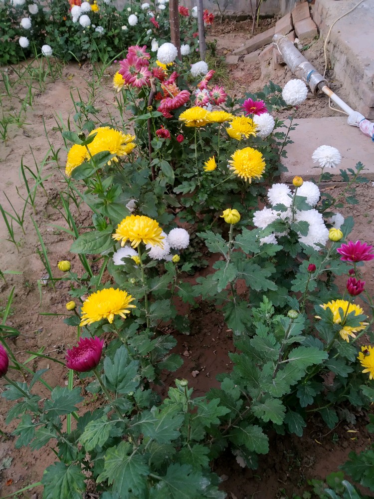 :我现在大概九种?还是十种菊花我忘记了,买时平均也就100来块钱,现在那么多,有分株的,有签插的,会越来越多。这个东西很好繁殖,就是地栽的旺一些。在盆里我也养不好,容易干。