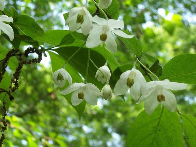 赤杨叶(学名:Alniphyllum fortunei (Hemsl.) Makino)是安息香科,赤杨叶属乔木,高可达20米,树干通直,树皮灰褐色,叶嫩时膜质,干后纸质,叶片顶端急尖至渐尖,基部宽楔形或楔形,边缘具疏离硬质锯齿,下面褐色或灰白色,叶柄被褐色星状短柔毛至无毛。总状花序或圆锥花序,顶生或腋生,花白色或粉红色,小苞片钻形,花萼杯状,萼齿卵状披针形,较萼筒长;花冠裂片长椭圆形,花丝膜质,扁平,花药长卵形,子房密被黄色长绒毛;花柱较雄蕊长,果实长圆形或长椭圆形,种子多数,4-7月开花,8-10月结果。