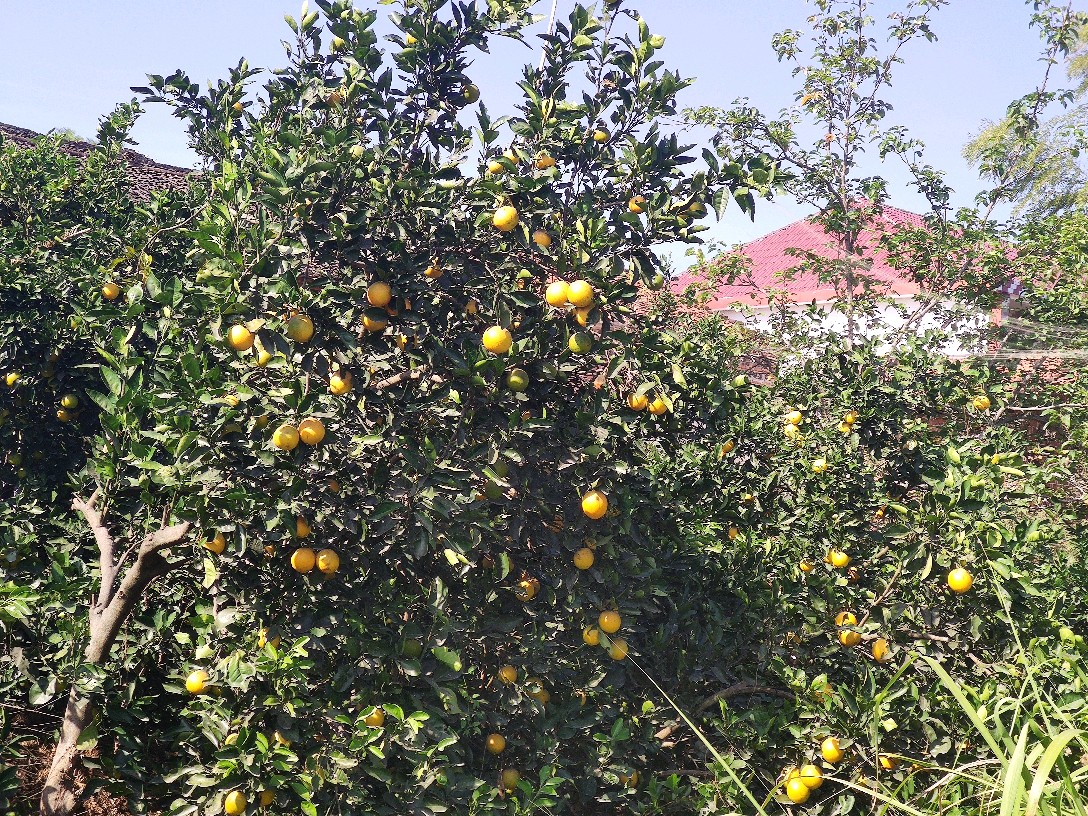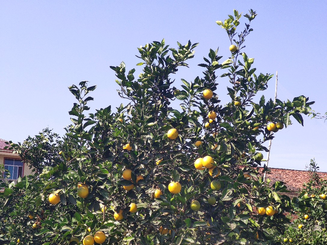 累累硕果黄澄澄的挂在枝头,看得人眼馋