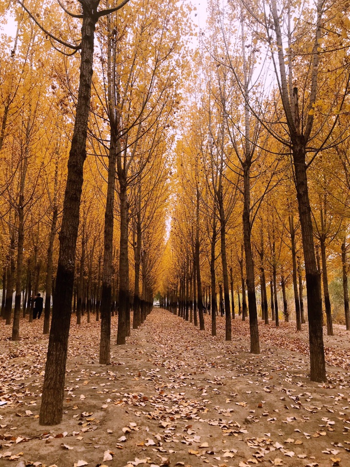 每年秋末冬初的时候,城外的杨树林就会呈现一片片金黄,明晃晃的黄,耀的眼睛有种睁不开的错觉