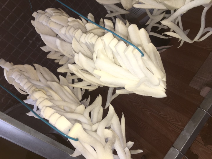 白萝卜,根茎类蔬菜,十字花科萝卜属植物。至今种植有千年历史,在饮食和中医食疗领域都有广泛应用。清乾隆庚午年(公元1750年)编修的《如皋县志》载:“萝卜,一名莱菔,有红白二种,四时皆可栽,唯末伏初为善,破甲即可供食,生沙壤者甘而脆,生瘠土者坚而辣。”其色白,属金,入肺,性甘平辛,归肺脾经,具有下气、消食、除疾润肺、解毒生津,利尿通便的功效。主治肺痿、肺热、便秘、吐血、气胀、食滞、消化不良、痰多、大小便不通畅等,白萝卜很适合用水煮熟后,喝萝卜水,放点白糖,可以当做饮料饮用,对消化和养胃有很好的作用。