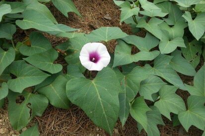 番薯(学名:Ipomoea batatas (L.) Lam.)别称甘储、甘薯、朱薯、金薯、番茹、红山药、玉枕薯、山芋、地瓜、甜薯、红薯、红苕、白薯、阿鹅、萌番薯。一年生草本植物,地下部分具圆形、椭圆形或纺锤形的块根,茎平卧或上升,偶有缠绕,多分枝,叶片形状、颜色常因品种不同而异,通常为宽卵形,叶柄长短不一,聚伞花序腋生,蒴果卵形或扁圆形,种子1-4粒,通常2粒,无毛。