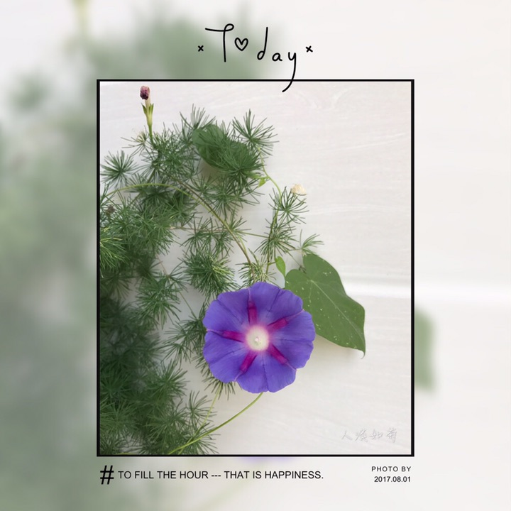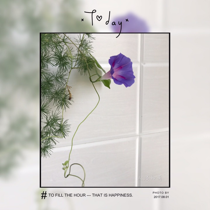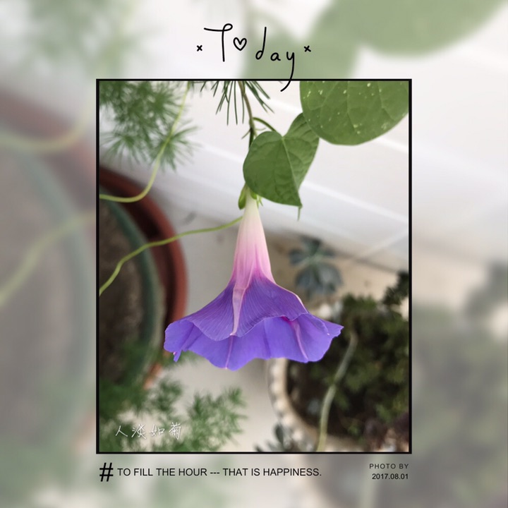 蓬莱松花盆里自然生长的一棵圆叶牵牛,定是换土时带来的种子,没舍得拔掉。