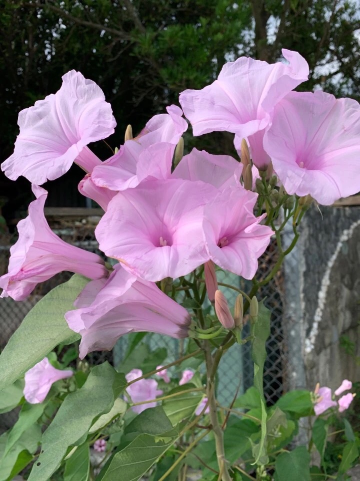 五爪金龙(学名:Ipomoea cairica (L.) Sweet)是管状花目、旋花科、番薯属多年生缠绕草本植物,全体无毛,茎细长,有细棱,叶片掌状,裂片卵状披针形、卵形或椭圆形,中裂片较大,聚伞花序腋生,苞片及小苞片均小,鳞片状,早落;萼片边缘干膜质,花冠紫红色、紫色或淡红色、偶有白色,漏斗状,子房无毛,花柱纤细,蒴果近球形,种子黑色,边缘被褐色柔毛。