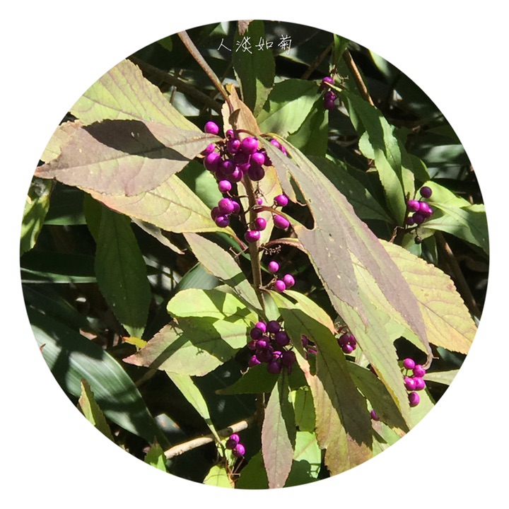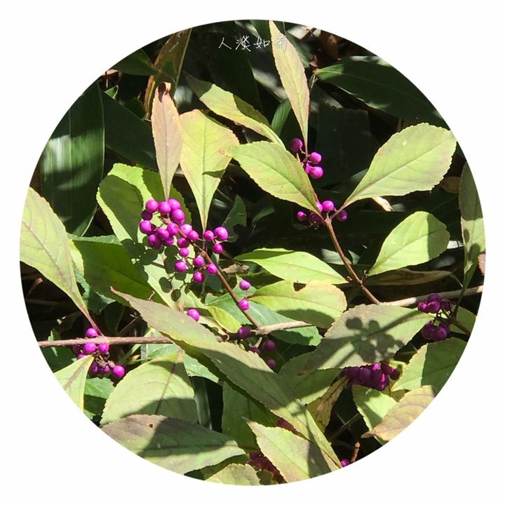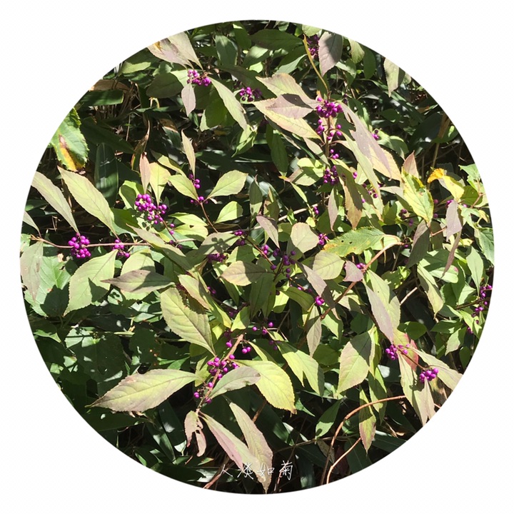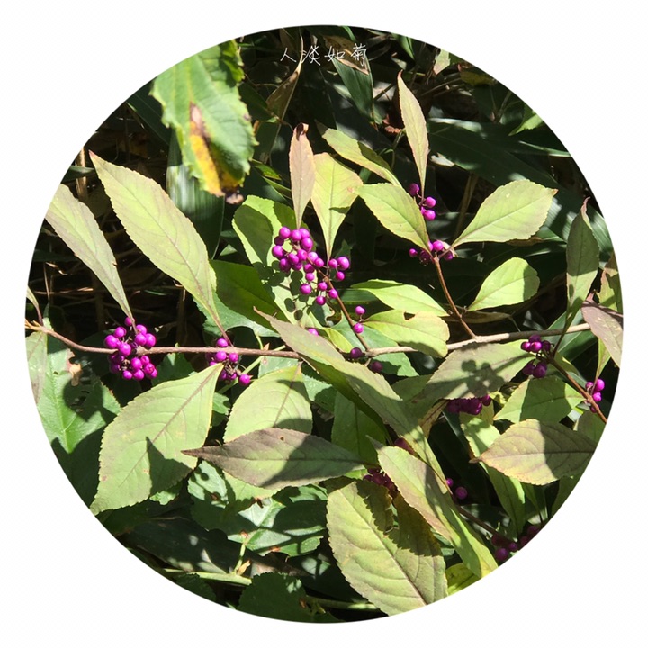 紫珠(学名:Callicarpa bodinieri Levl. )是马鞭草科、紫珠属落叶灌木,高约2米;叶片卵状长椭圆形至椭圆形,顶端长渐尖至短尖,基部楔形,边缘有细锯齿,背面灰棕色,两面密生暗红色或红色细粒状腺点;聚伞花序;苞片细小,线形;花萼外被星状毛和暗红色腺点,萼齿钝三角形;花冠紫色,花药椭圆形,药隔有暗红色腺点,药室纵裂;子房有毛。果实球形,6-7月开花,8-11月结果。
